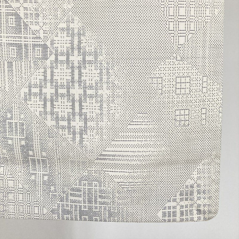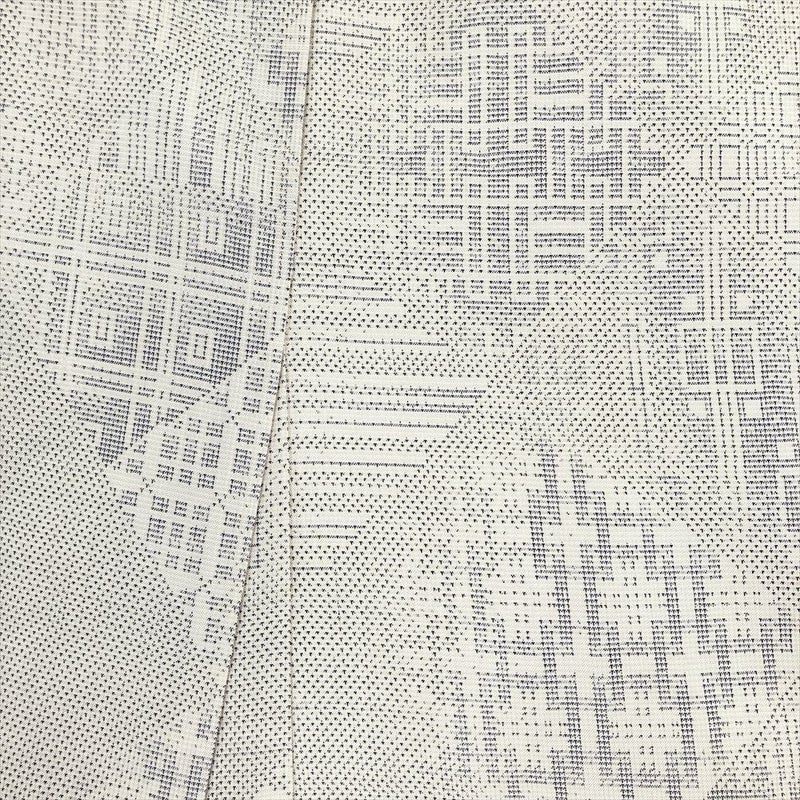 <div class=白地に菱重ねの幾何学柄を織り込んだ大島紬。