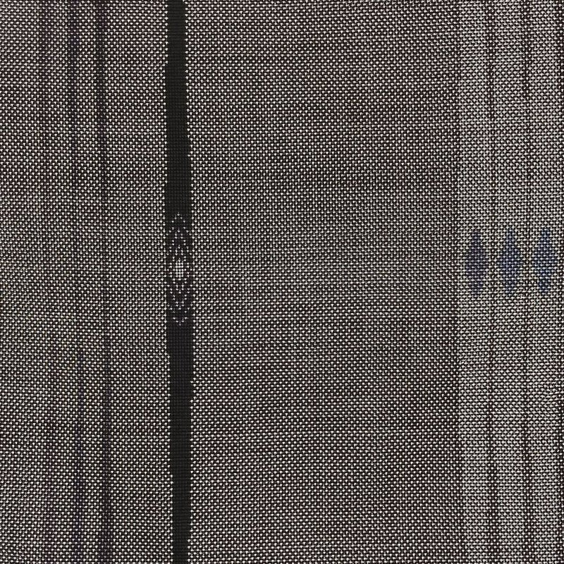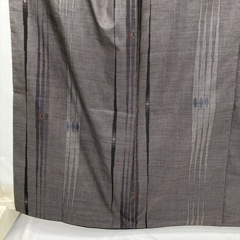 <div class=焦げ茶の地に変わり縞と菱文を組み合わせた大島紬。