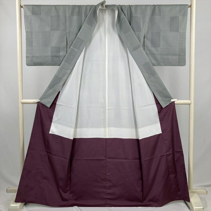 【色柄】薄灰緑 カジュアル 変わり市松 絣柄