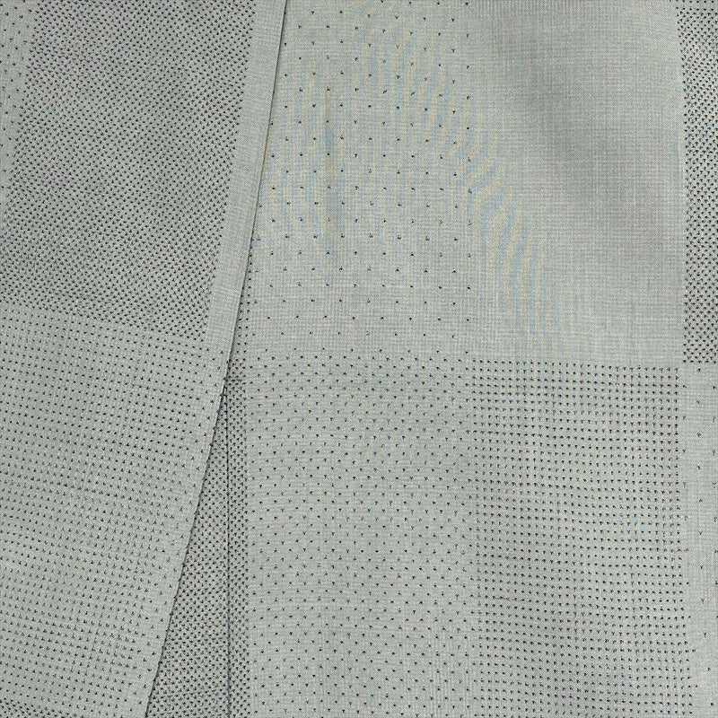 <div class=薄灰緑の地に変わり市松の絣柄を織り込んだ大島紬。