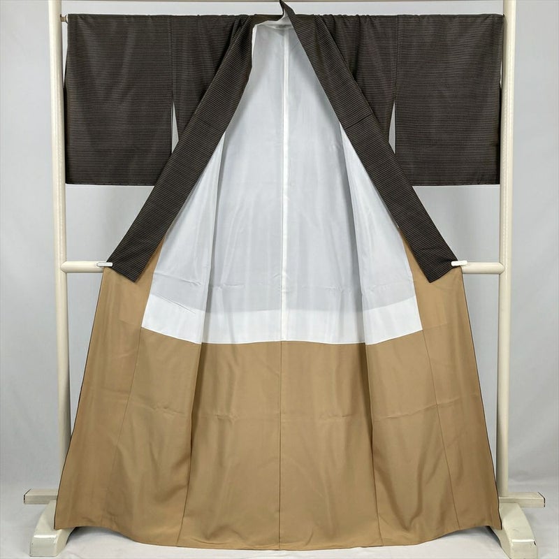 (中古) 大島紬 焦げ茶 カジュアル 格子 袷 絹 【身丈】161cm【裄丈】72cm