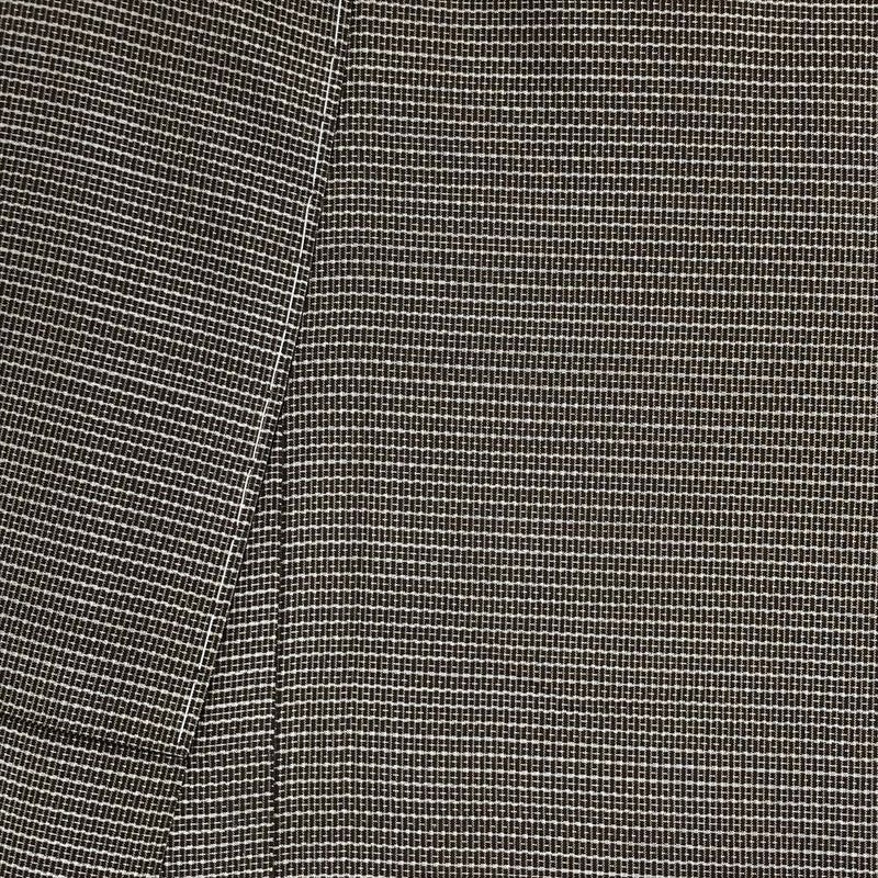 上質な泥染め大島紬の持つ、しなやかさと独特の光沢。非常に細かい格子柄で、洗練されたモダンな印象。