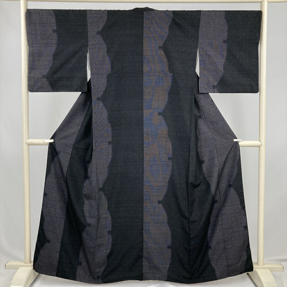 (中古) 結城紬 黒 カジュアル 雪輪 袷 絹 【身丈】157cm【裄丈】68.5cm