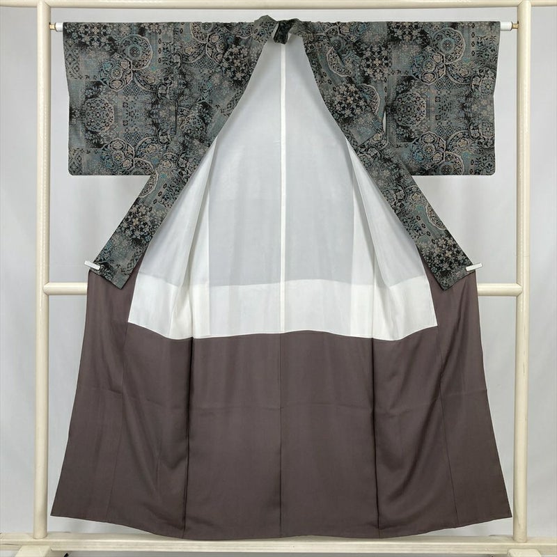 (中古) 大島紬 焦げ茶 カジュアル 平安鏡 袷 絹【身丈】147cm【裄丈】63.5cm