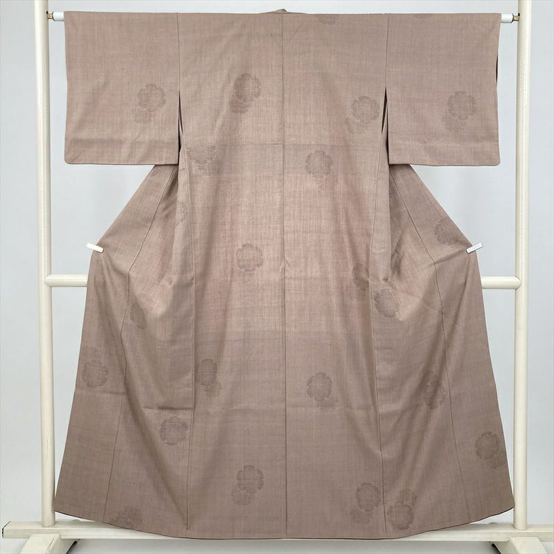 (中古) 紬 薄赤茶 カジュアル 雪輪 絣 袷 絹 【身丈】151cm【裄丈】63cm