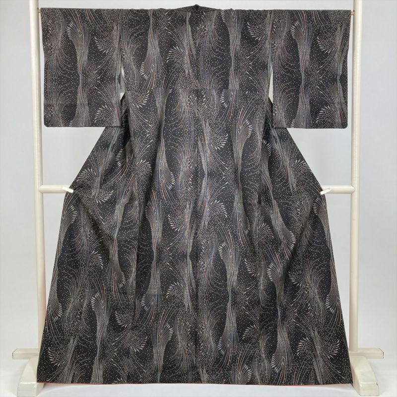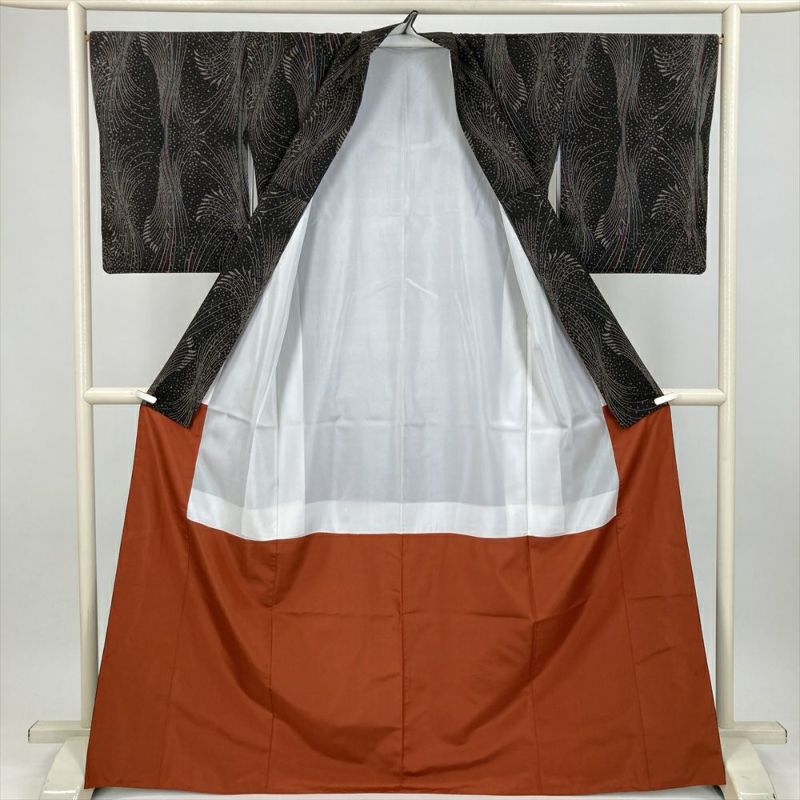 (中古) 大島紬 焦げ茶 カジュアル 抽象柄 袷 絹 【身丈】162cm【裄丈】66.5cm