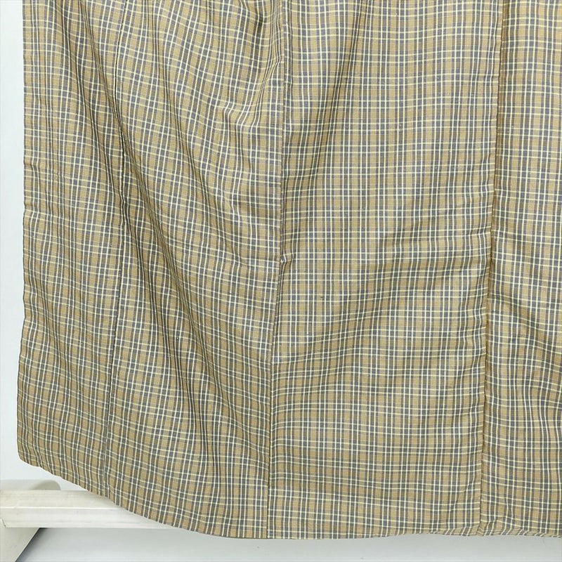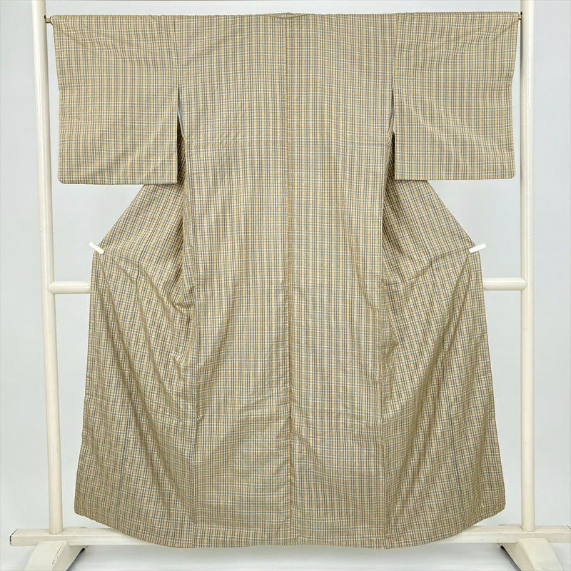 (中古) 大島紬 黄色 灰色 グレー カジュアル 格子 袷 絹【身丈】152cm【裄丈】66cm