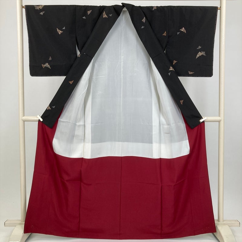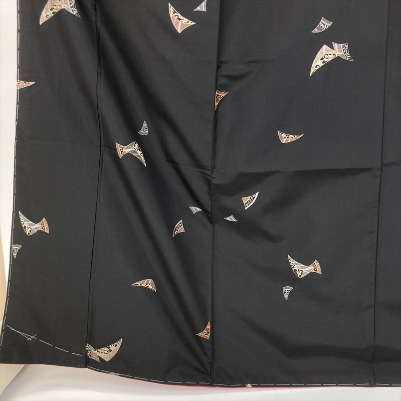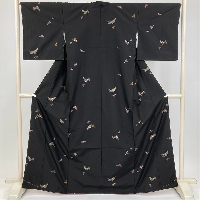 (中古) 大島紬 黒 カジュアル 刺繍柄 袷 絹 【身丈】159cm【裄丈】66.5cm