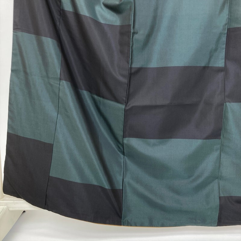 (中古) 大島紬 深緑 黒 カジュアル 市松 袷 絹【身丈】155cm【裄丈】65.5cm