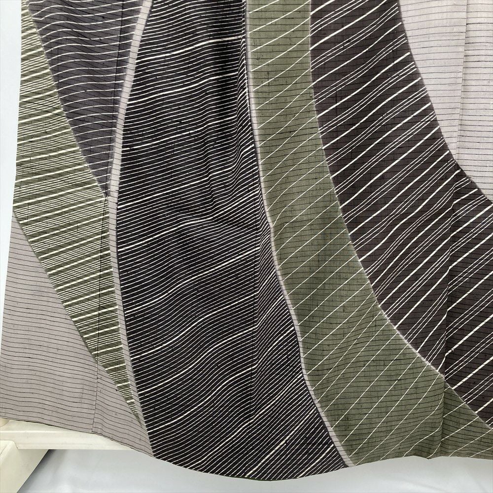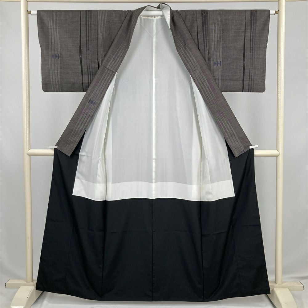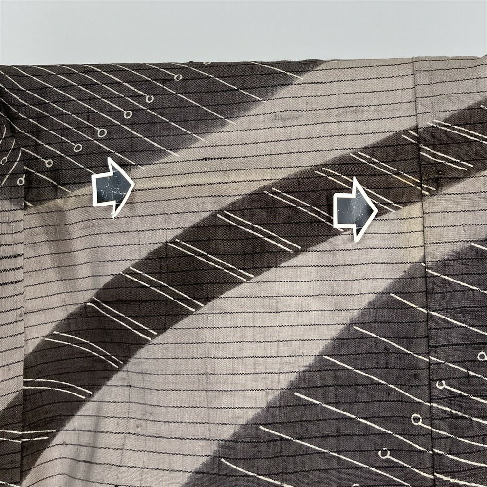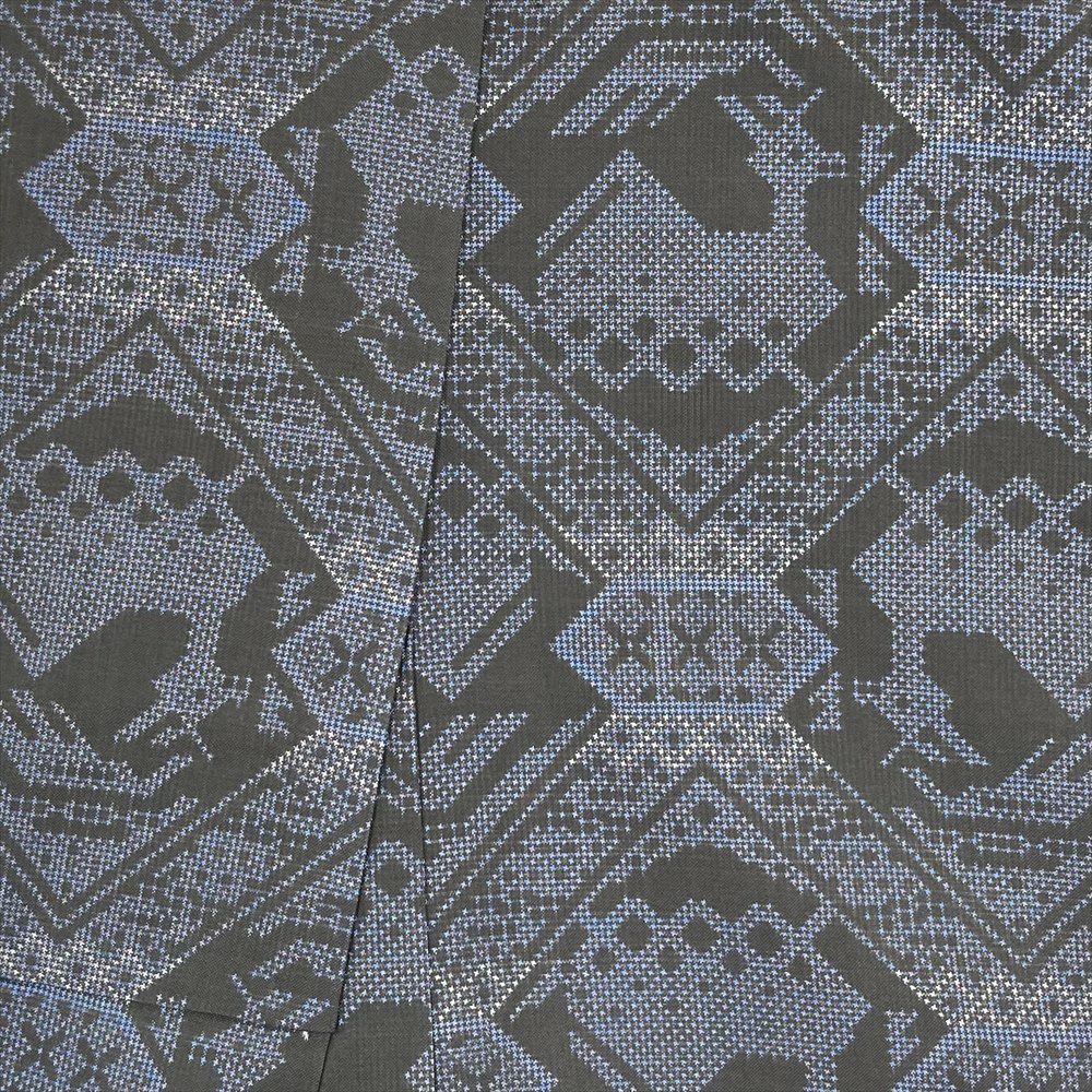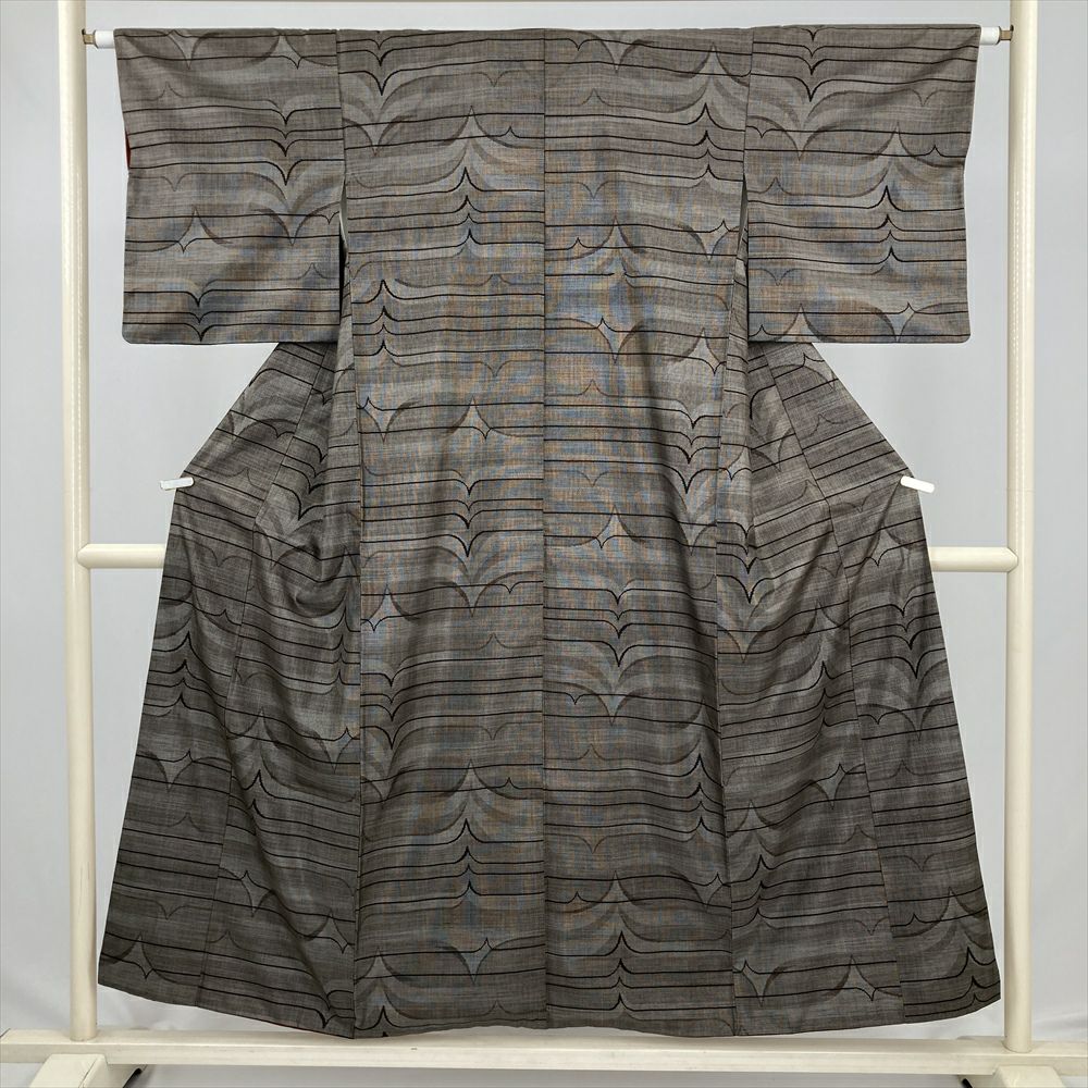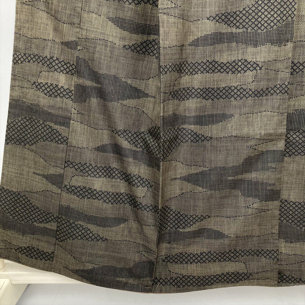 他の画像を見る (中古) 紬 グレージュ 灰茶 カジュアル 二代目川村久太郎 落款 染め大島 幾何学 袷 絹 【身丈】151.5cm【裄丈】63cm 新入荷 ¥ 55,000 税込 お気に入りに登録する
