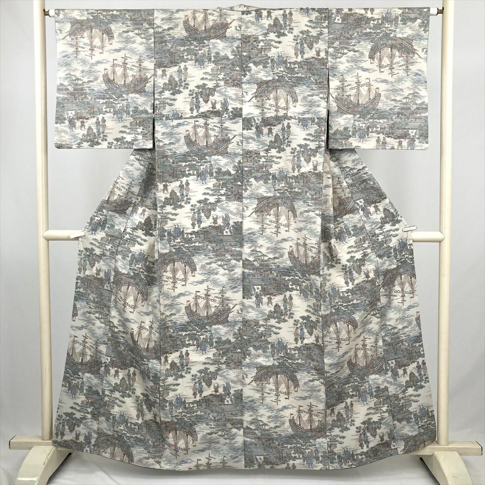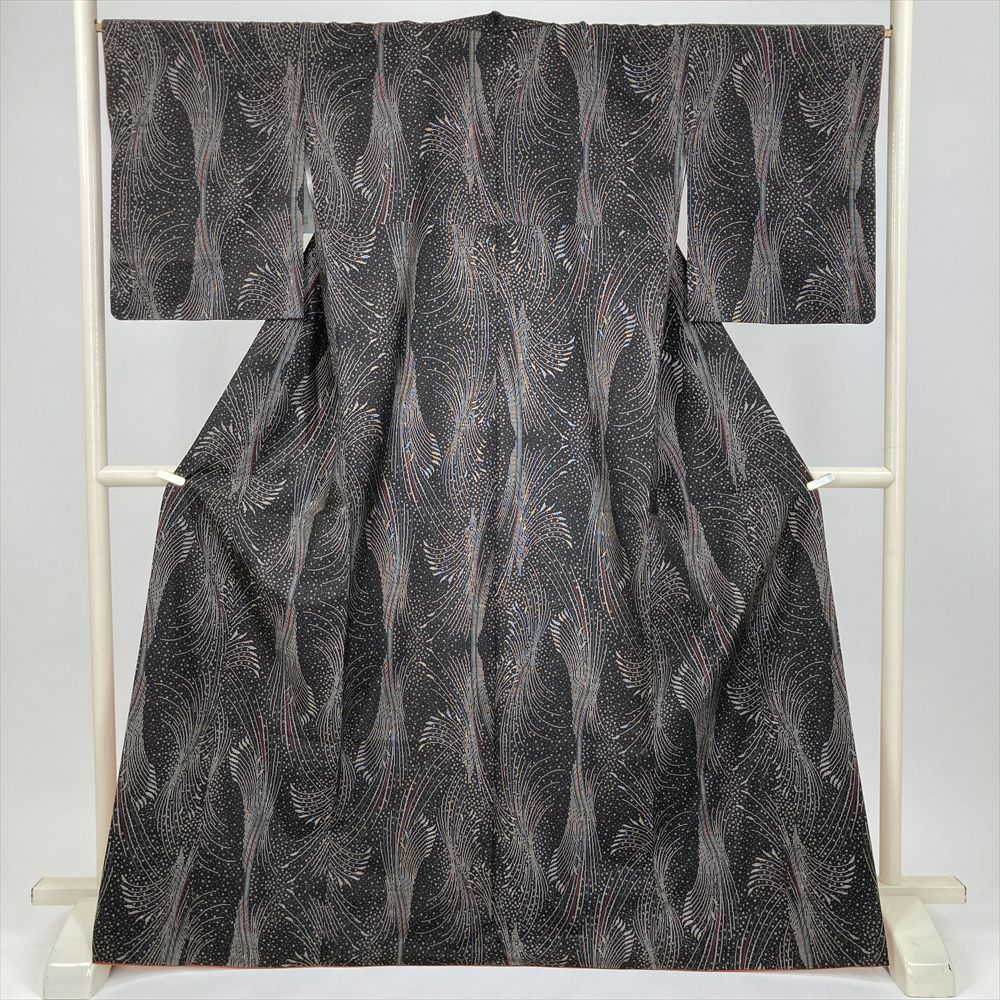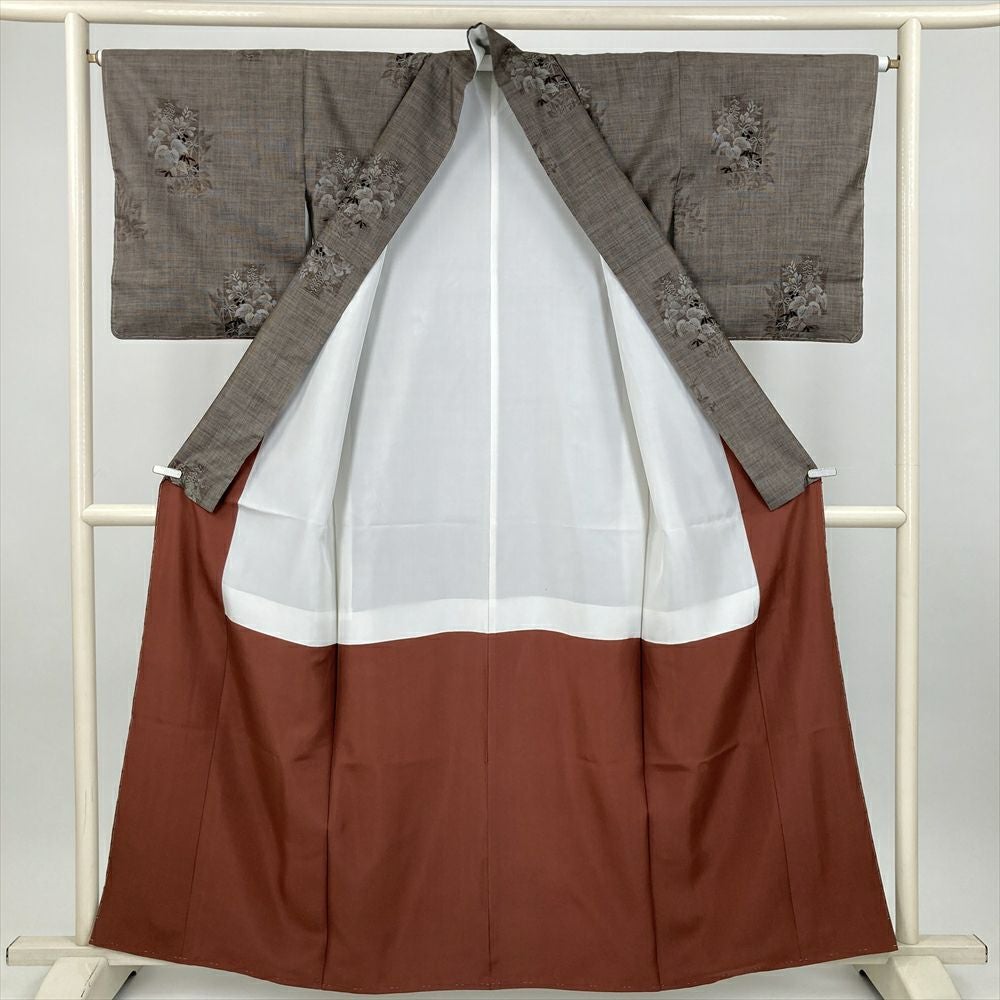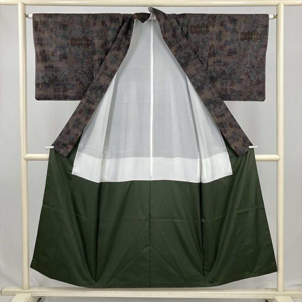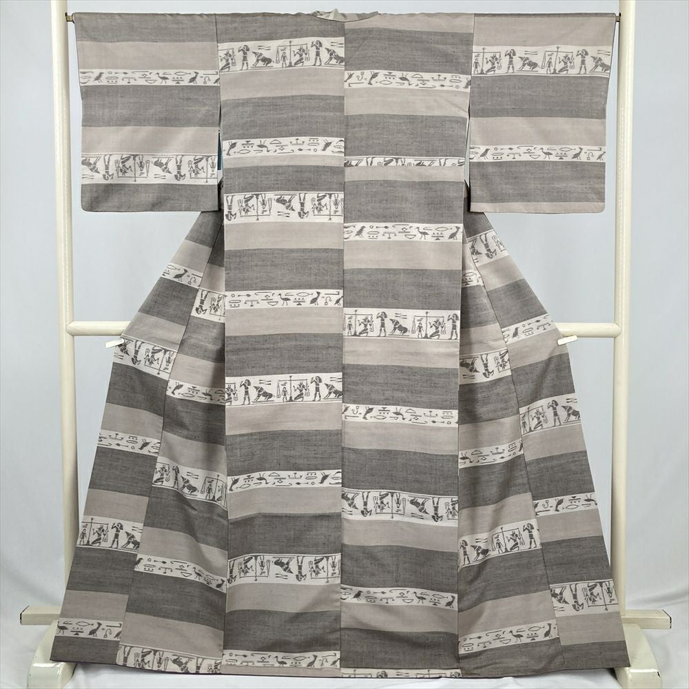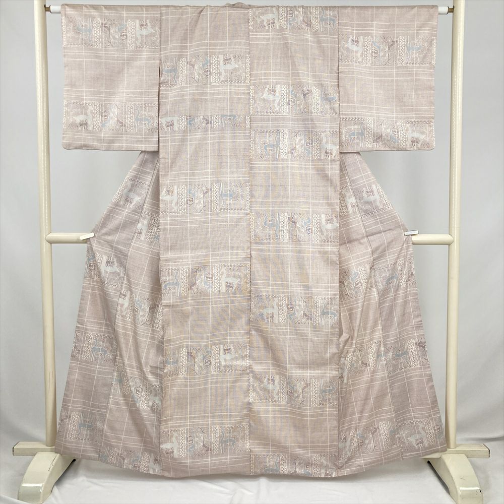 他の画像を見る (中古) 紬 グレージュ 灰茶 カジュアル 二代目川村久太郎 落款 染め大島 幾何学 袷 絹 【身丈】151.5cm【裄丈】63cm 新入荷 ¥ 55,000 税込 お気に入りに登録する