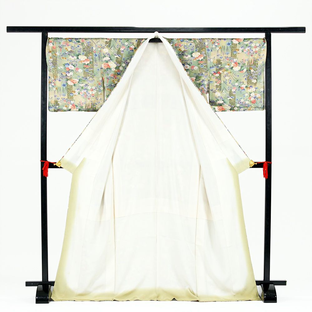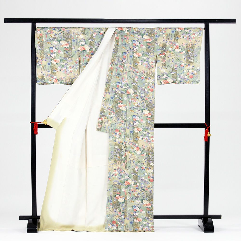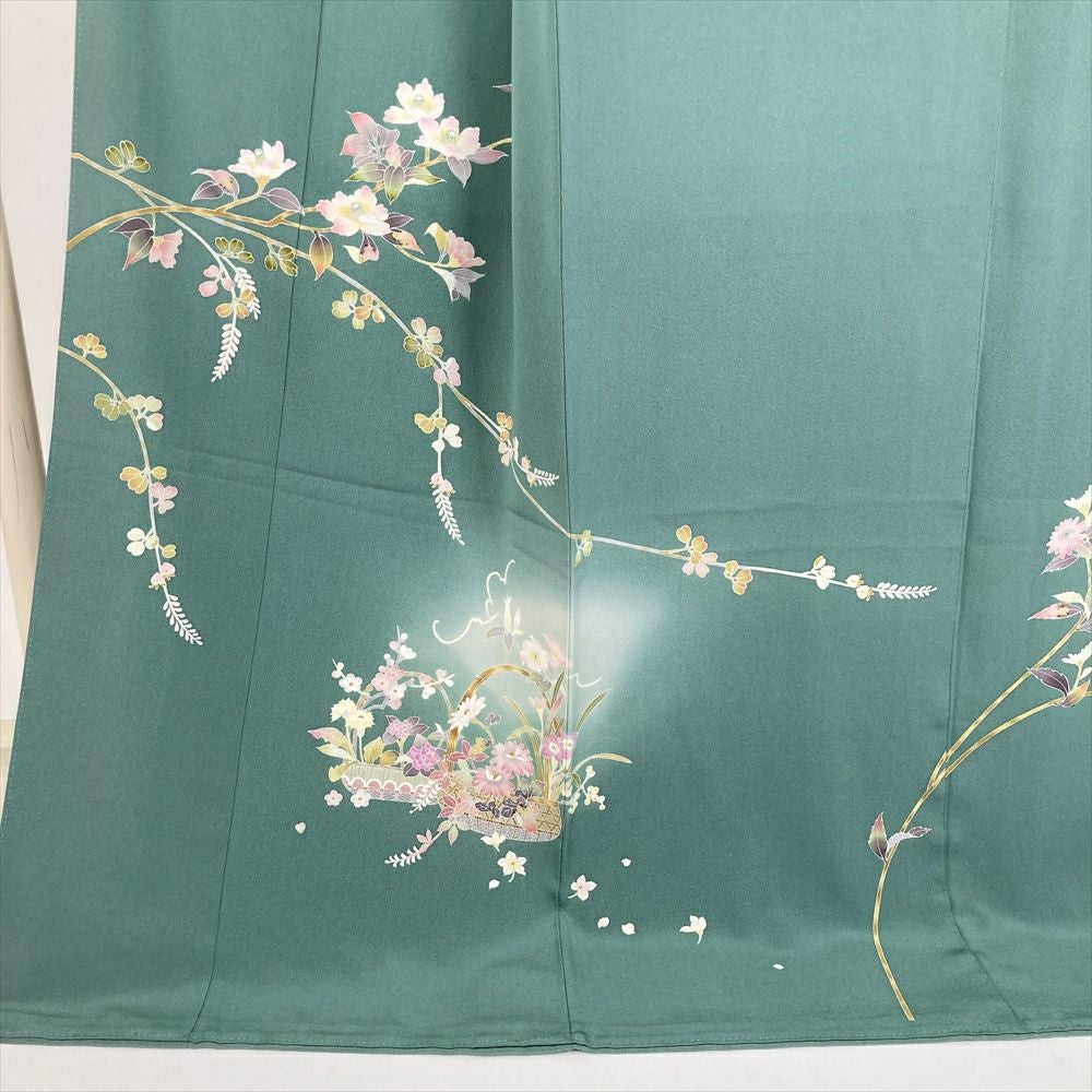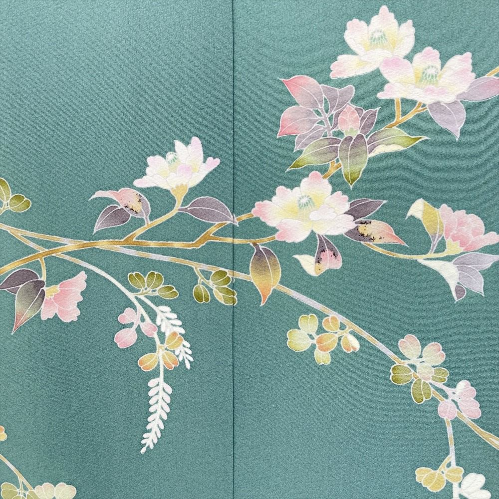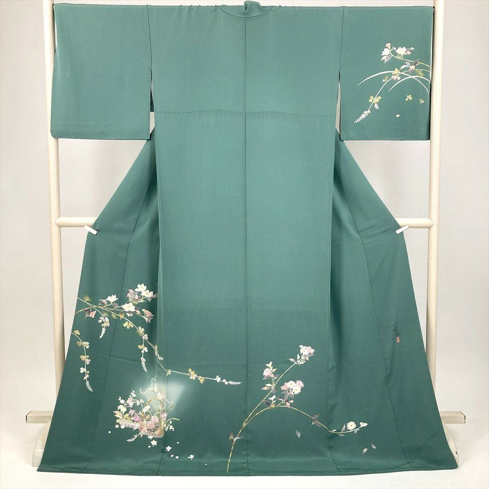 他の画像を見る (中古) 単衣色無地 孔雀色 青緑 カジュアル オリエンタル 唐花文様 地紋織り 単衣 絹【身丈】154cm【裄丈】63.5cm 新入荷 ¥ 16,500 税込 在庫切れ お気に入りに登録する