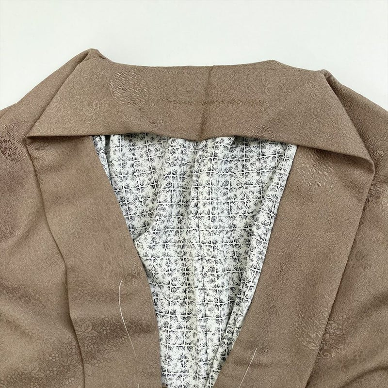 (中古) リメイク男物羽織 薄茶色 カジュアル 地紋織り 無地感 袷【身丈】98cm【裄丈】78cm