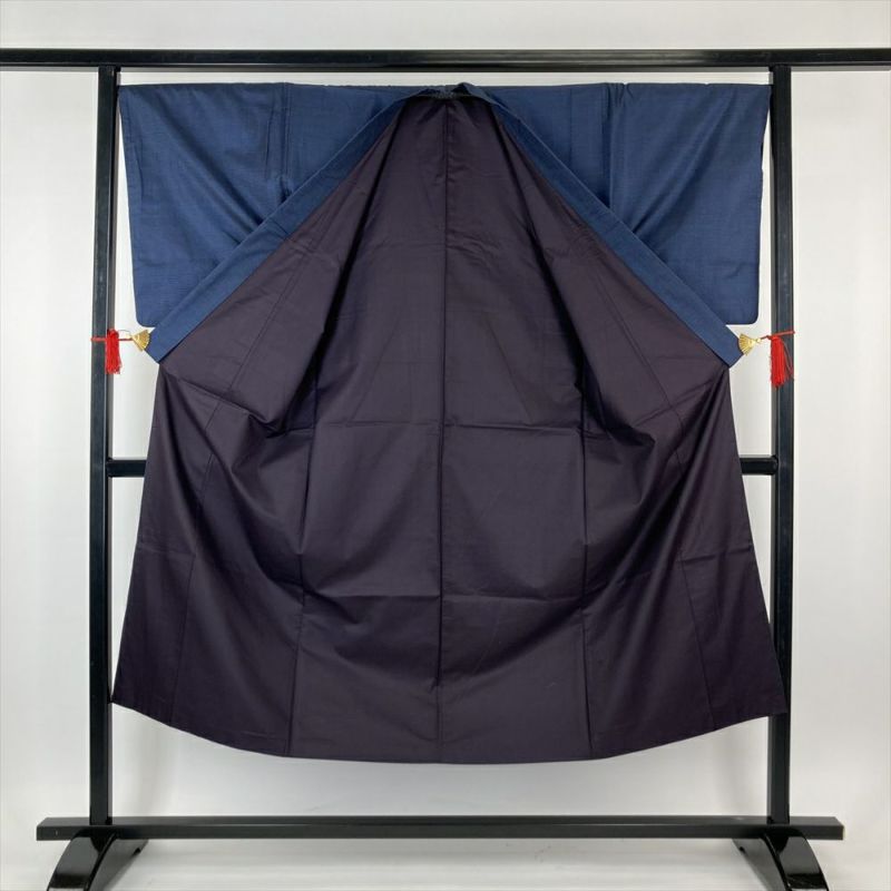(中古)男物着物 紺 大島紬 亀甲 袷 M【身丈】144cm【裄丈】68.5cm