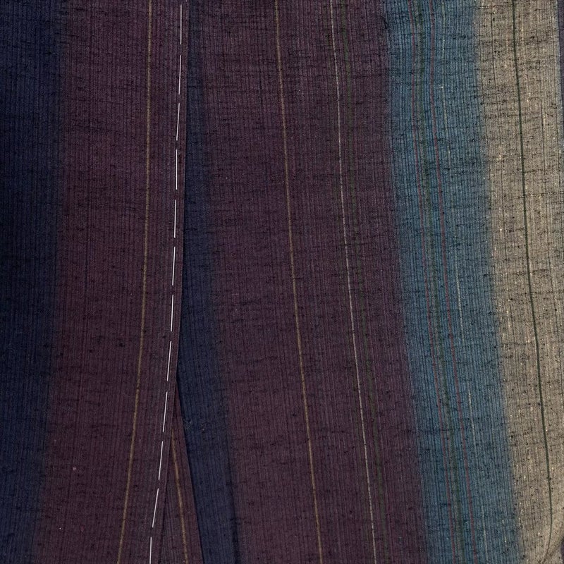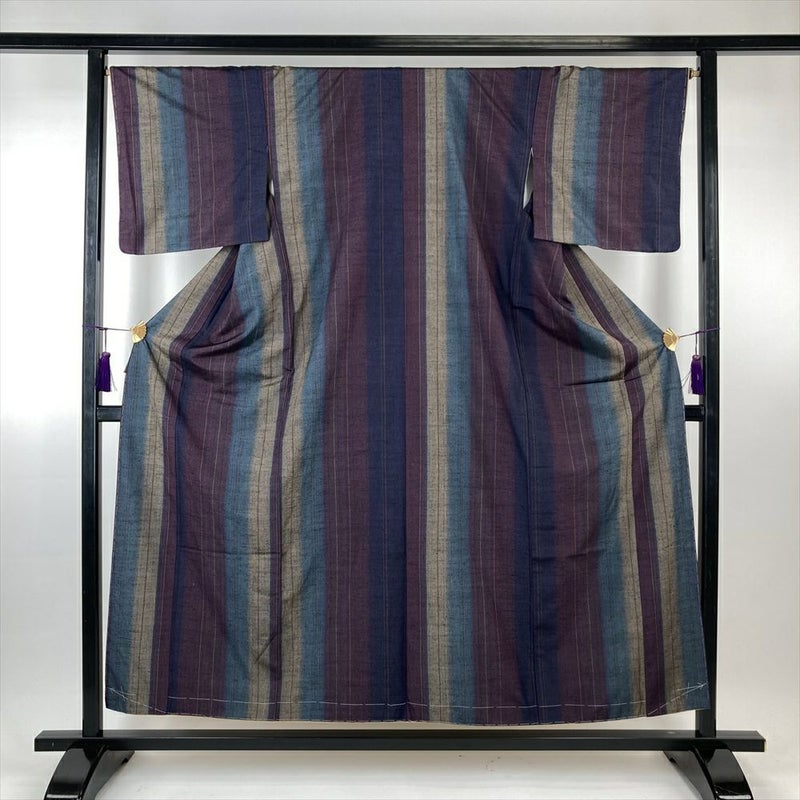 (中古)男物紬 紫 カジュアル 縞 グラデーション 袷 SS【身丈】151cm 【裄丈】67.5cm
