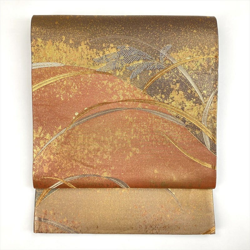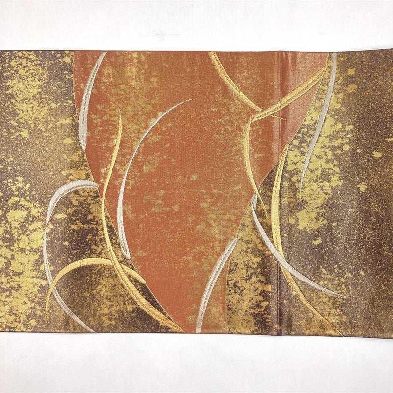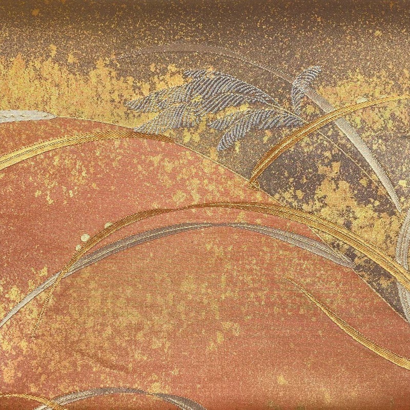 (中古)袋帯 マルチカラー 茶 セミフォーマル カジュアル 六通 切箔 葉
