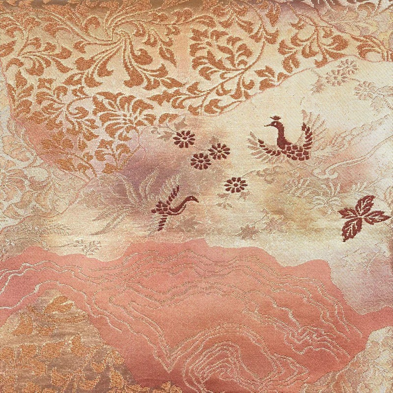 【色柄】紅梅色 ピンク セミフォーマル カジュアル 霞取り 花唐草 天平文 花鳥 切箔 金糸 色糸 六通