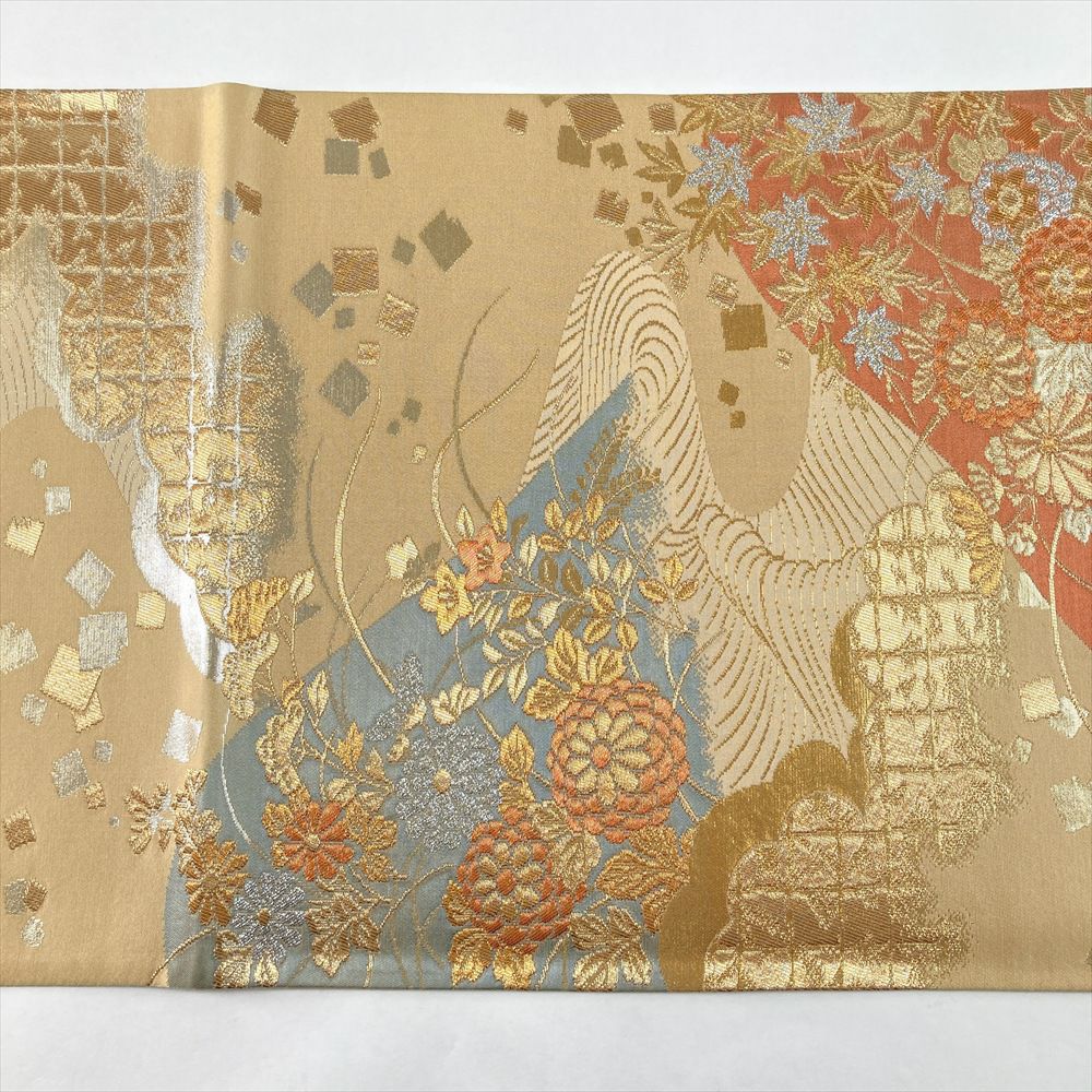 (中古)袋帯 金 セミフォーマル フォーマル 六通 織り 山取り 流水 花草 絹
