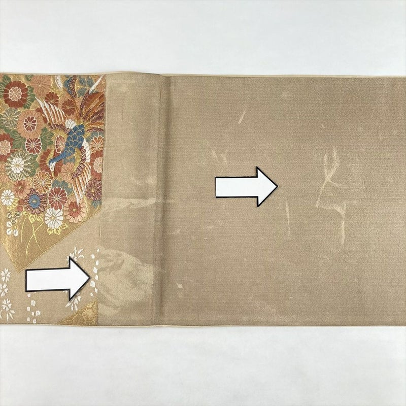 (中古)袋帯 金 フォーマル 六通 織り 色紙文 花鳥 絹