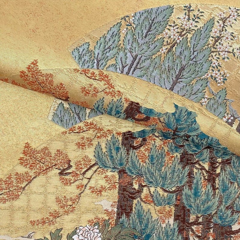 【色柄】金 フォーマル 扇面に四季の草花 琳派調 切箔 色糸 六通