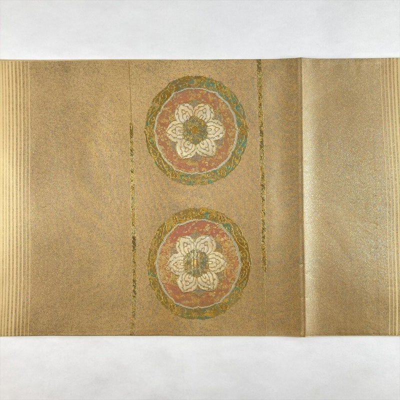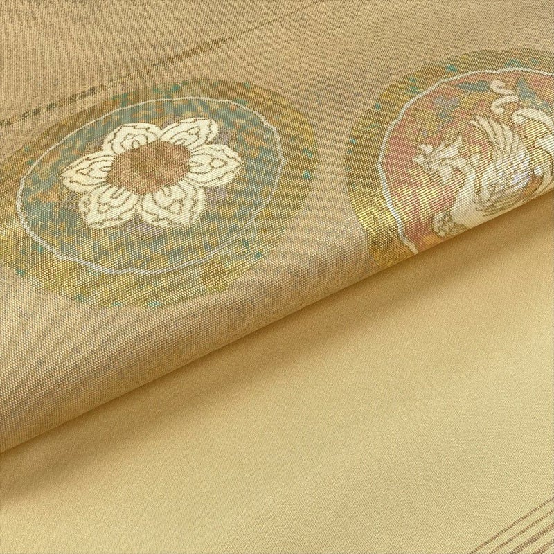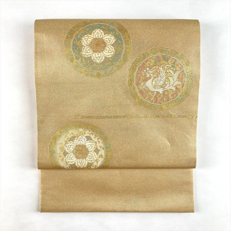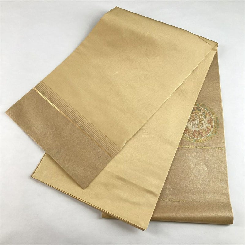 (中古)袋帯 金 フォーマル 六通 螺鈿箔 天平 花鳥 絹