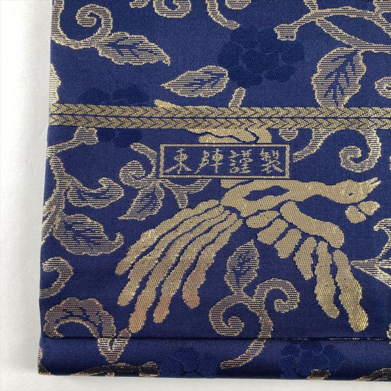 紺と金のコントラストが美しい、両面全通仕様の豪華な袋帯です。