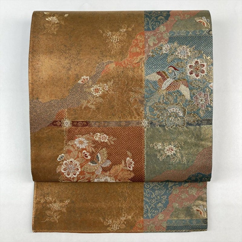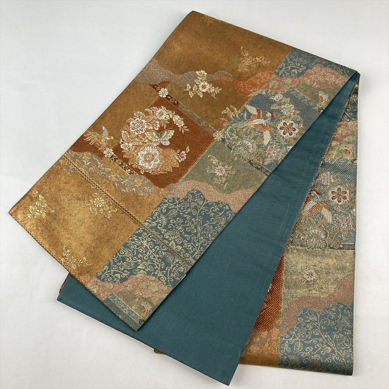 (中古)袋帯 金色 フォーマル 六通 引き箔 金糸 銀糸 鳳凰 四季花 絹