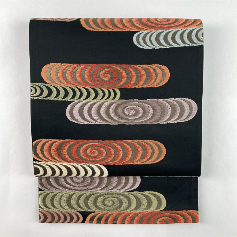 (中古)袋帯 黒 セミフォーマル 六通 織り 観世水文 絹