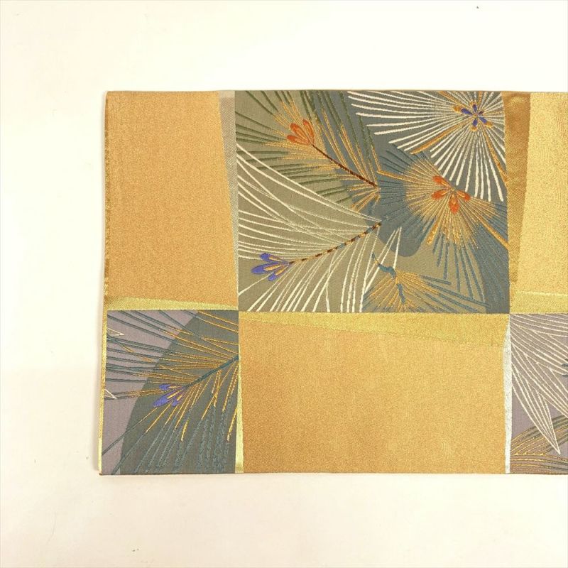 【色柄】金地 銀糸 市松取り 若松