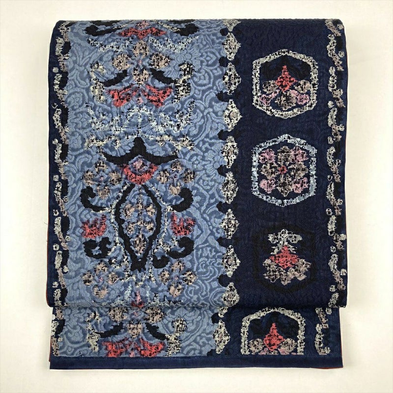 (中古)袋帯 紺 カジュアル 全通 ふくれ織り 天平文様 オリエンタル