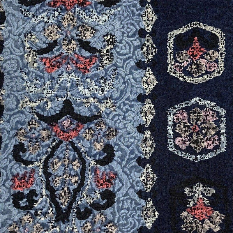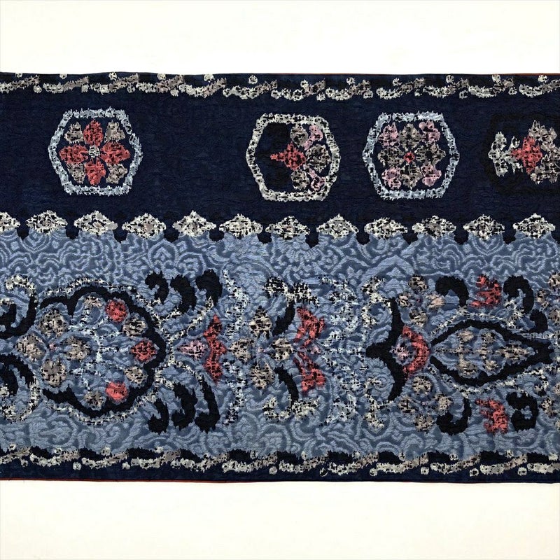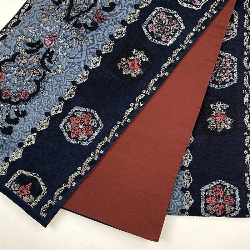 【色柄】紺 カジュアル 全通 ふくれ織り 天平文様 オリエンタル