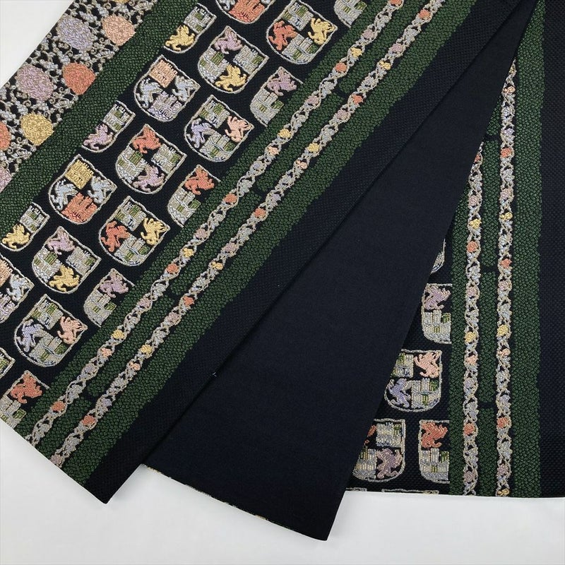 (中古)袋帯 黒 カジュアル 六通 金糸 花 動物 名物裂調