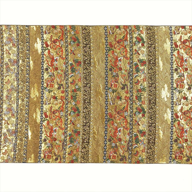 【色柄】金 フォーマル セミフォーマル 横段 和楽 花鳥 切箔 色糸 六通