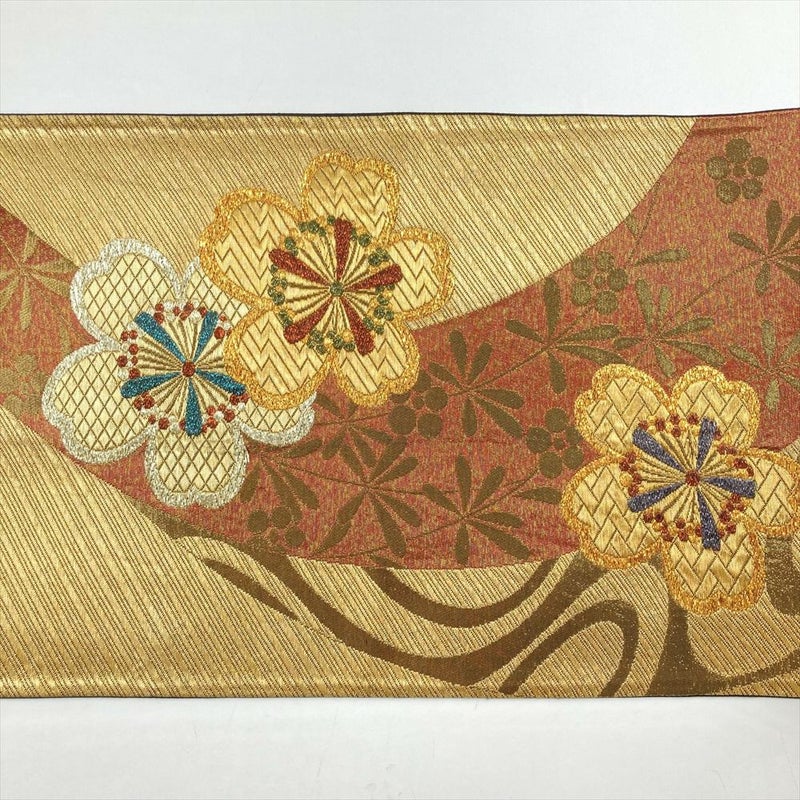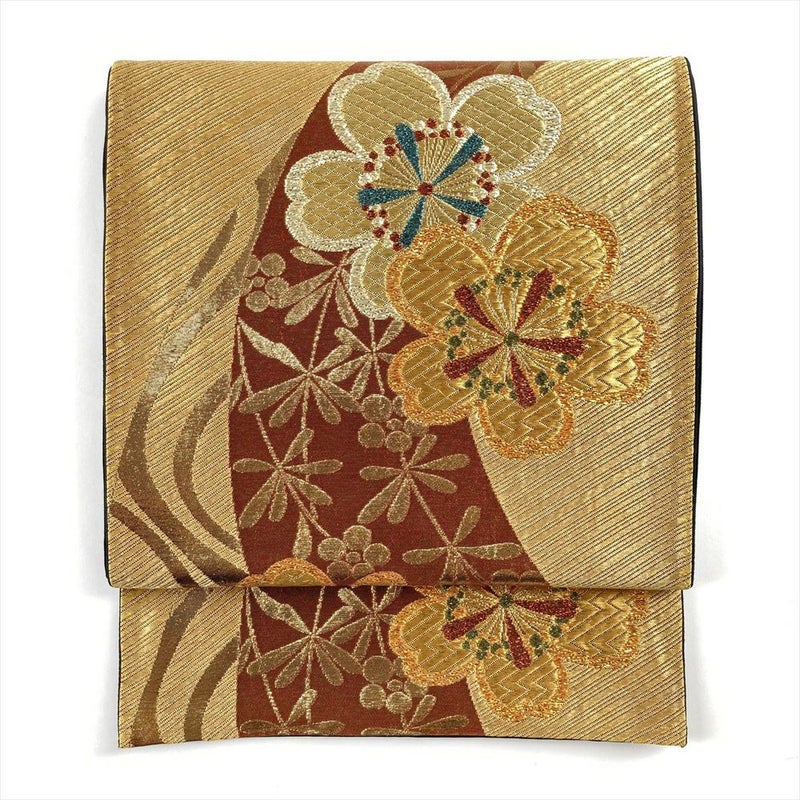 (中古)袋帯 金 フォーマル セミフォーマル 六通 多色引箔 桜 流水