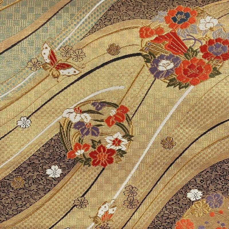 生地には程よい張りと柔らかさがあります、古くから愛される伝統文様には安定感があります、晴れの日の装いを華やかに彩ります。裏地にヤケ汚れがございます。折りシワなど若干の使用感がございます。