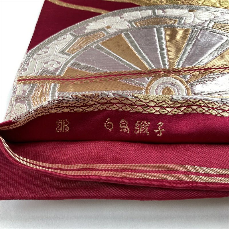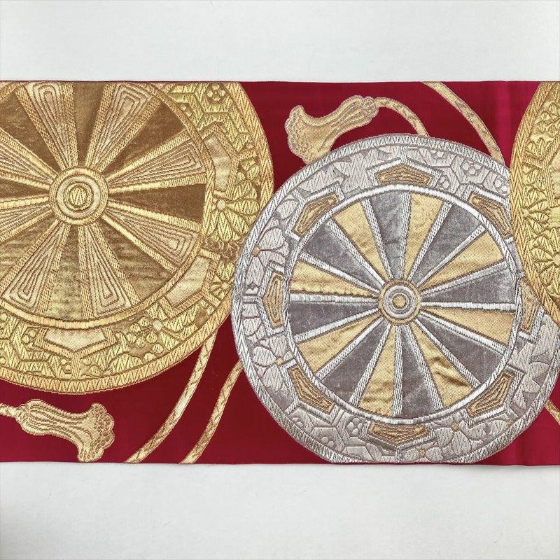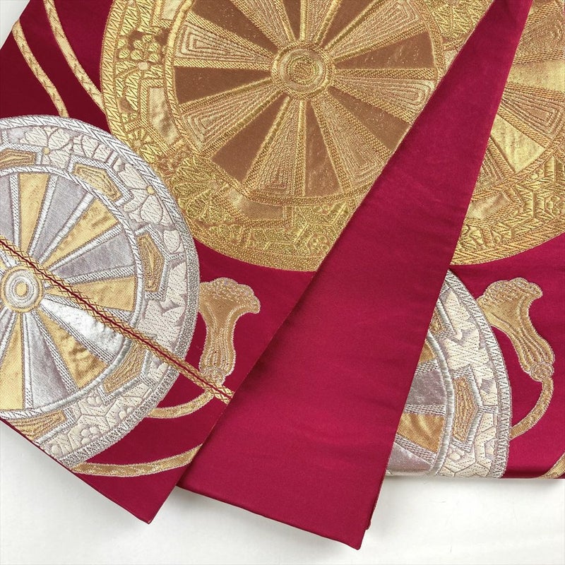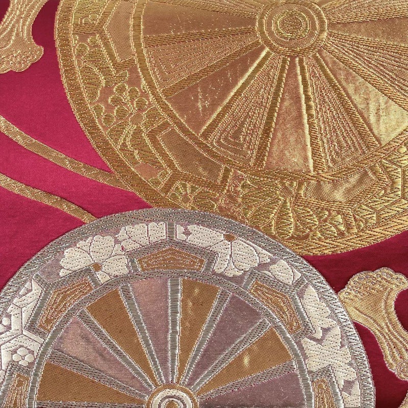 (中古)袋帯 金 銀 マゼンダ フォーマル セミフォーマル 六通 切箔 金糸 源氏車