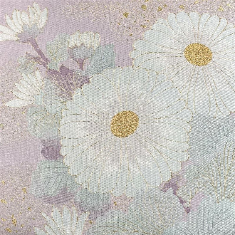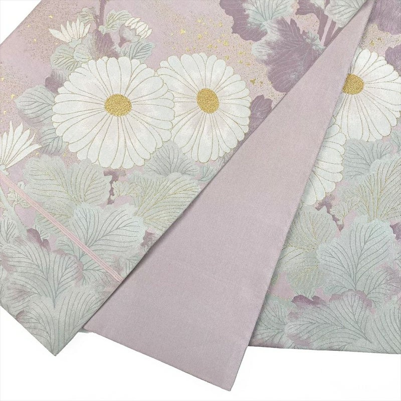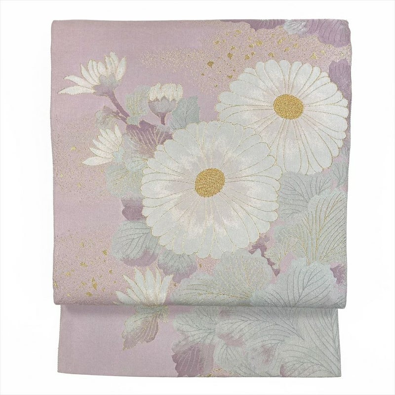 (中古)袋帯 薄紫 セミフォーマル カジュアル 六通 切箔 金糸 色糸 菊