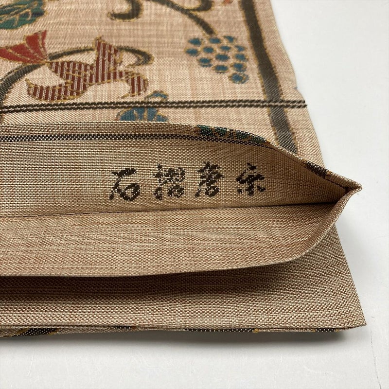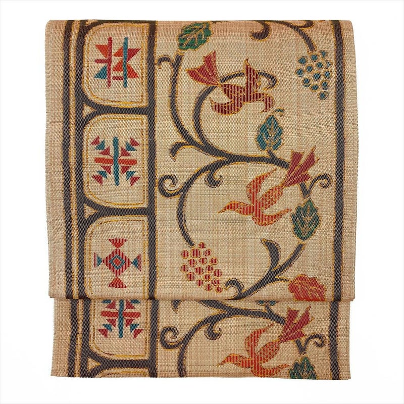 (中古)袋帯 ベージュ 織り カジュアル 六通 蔓葡萄 オリエンタル 鳥