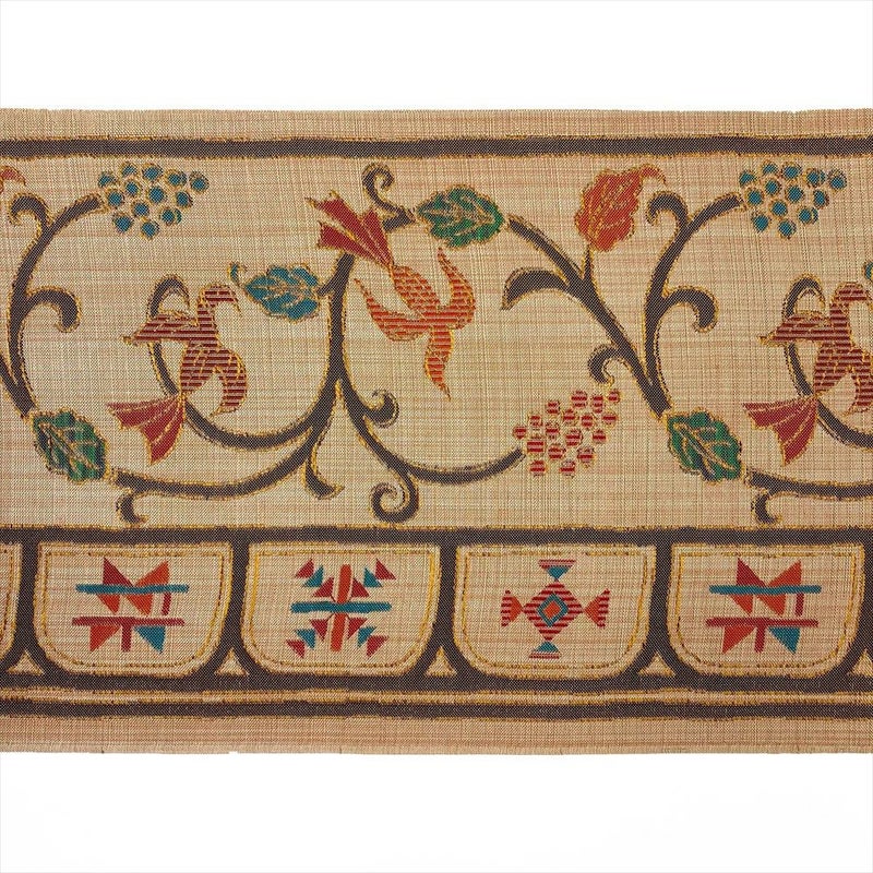 【色柄】織り カジュアル 蔓葡萄 鳥 オリエンタル ベージュ 六通