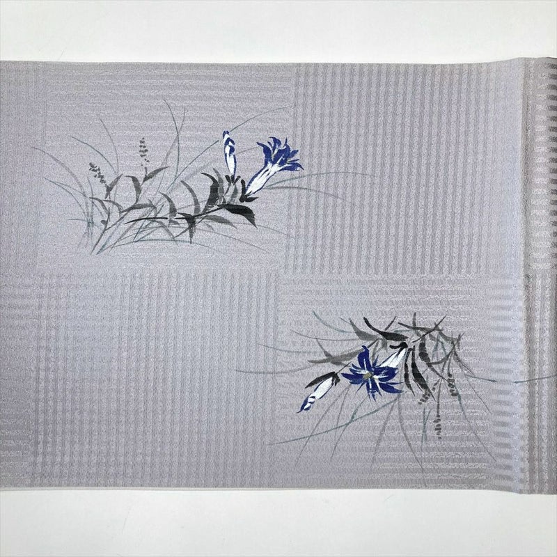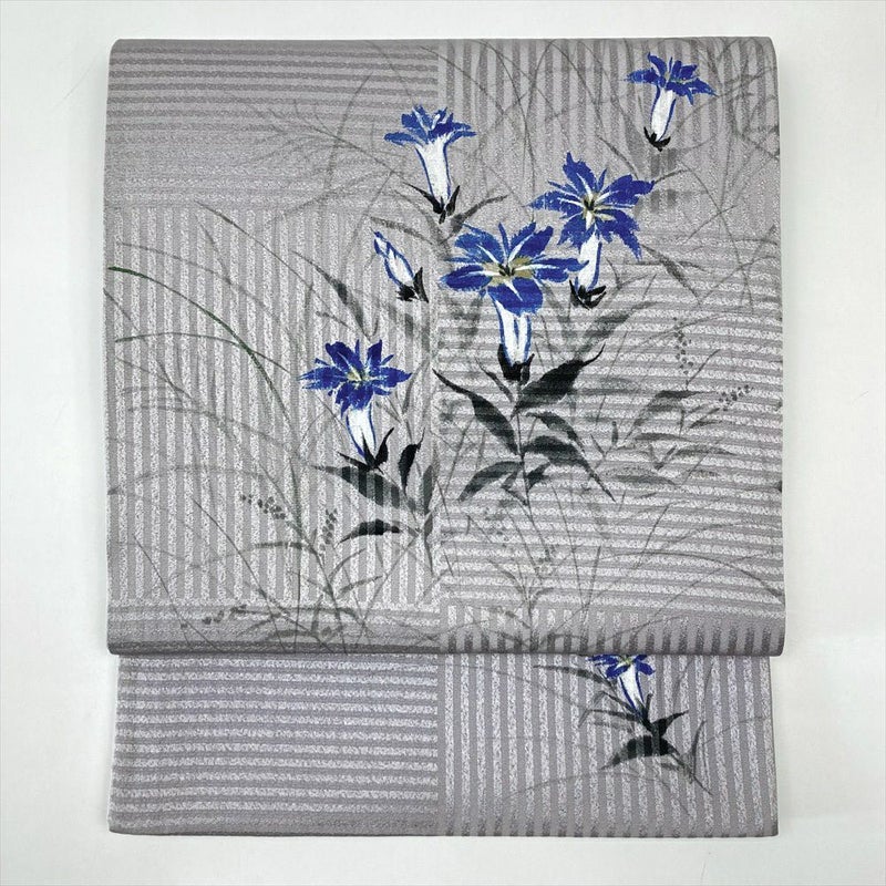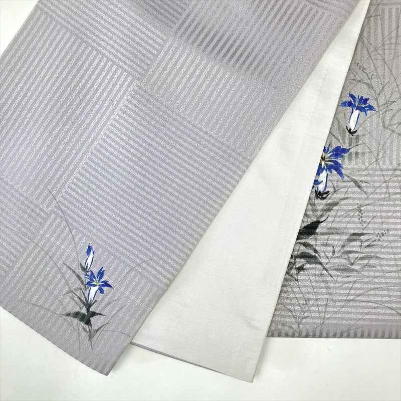 (中古)袋帯 薄紫 地紋織り カジュアル 六通 薄 花