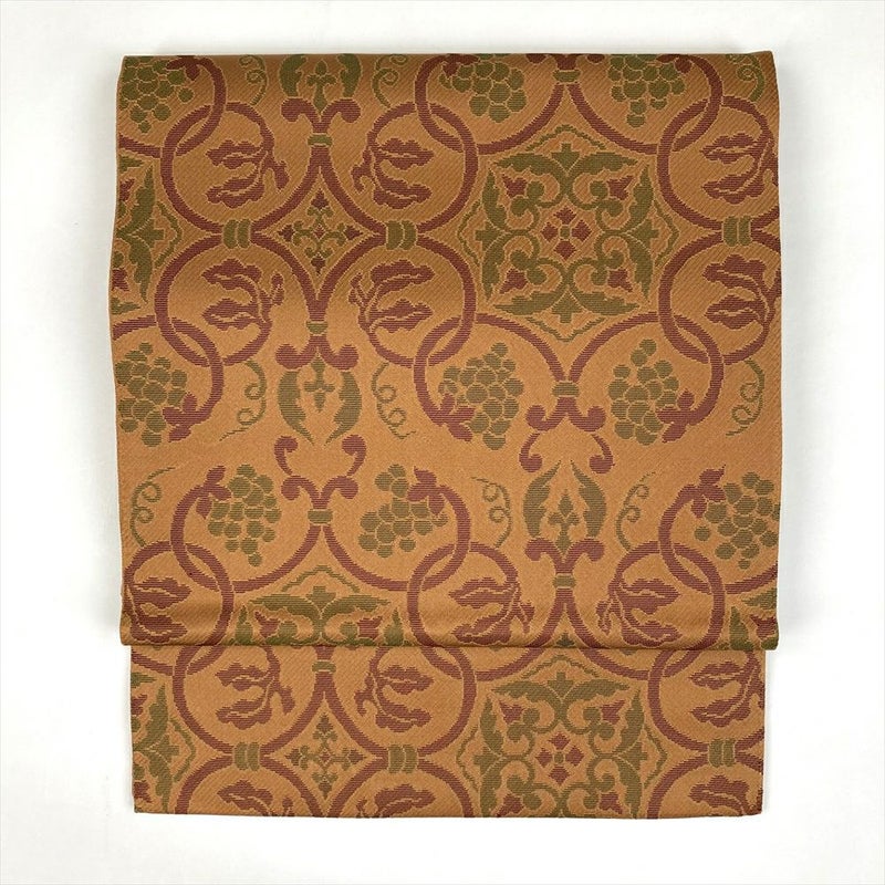 (中古)袋帯 金茶 織り セミフォーマル カジュアル 六通 蔓葡萄 華文
