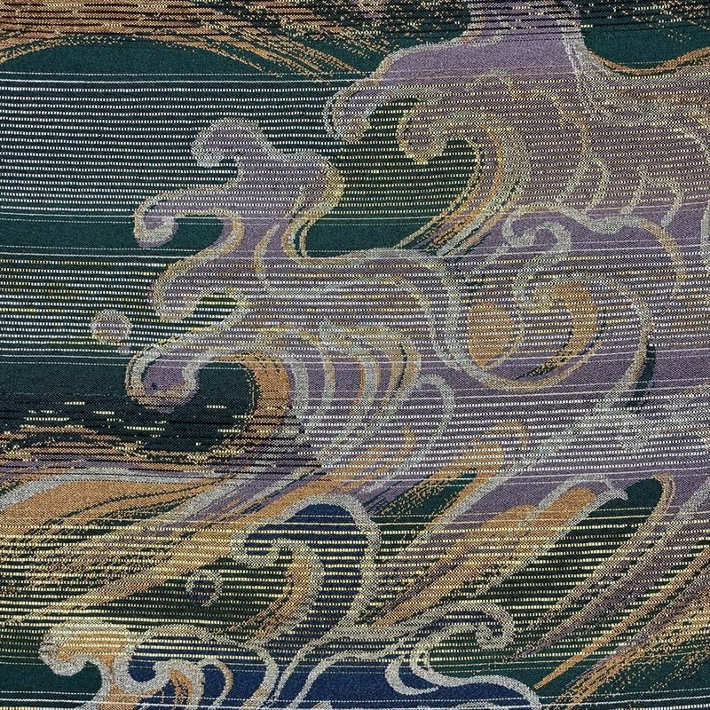 【色柄】青 緑 セミフォーマル カジュアル 荒波 波頭 金糸 銀糸 六通