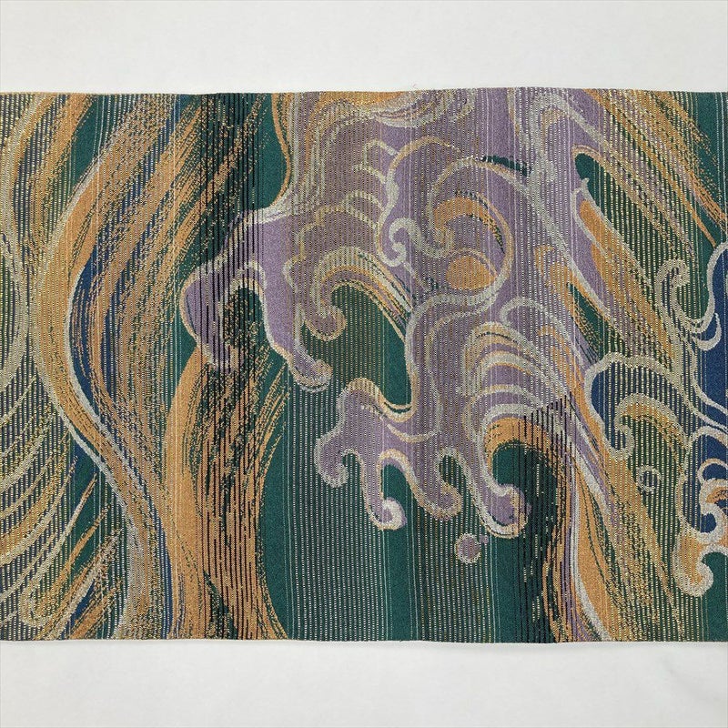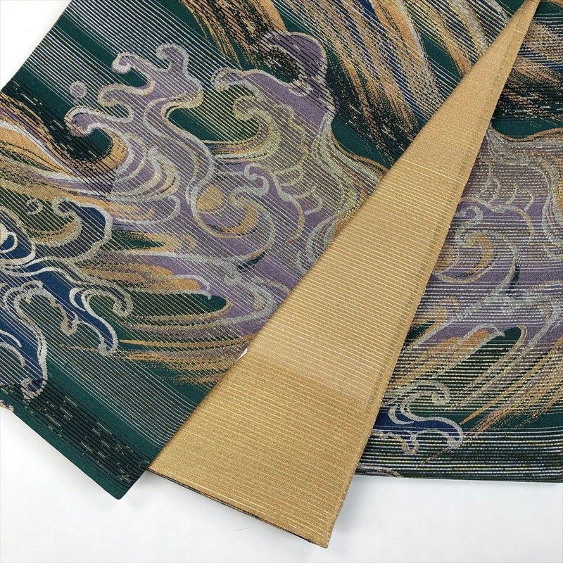 (中古)袋帯 青 緑 セミフォーマル カジュアル 六通 金糸 銀糸 荒波 波頭