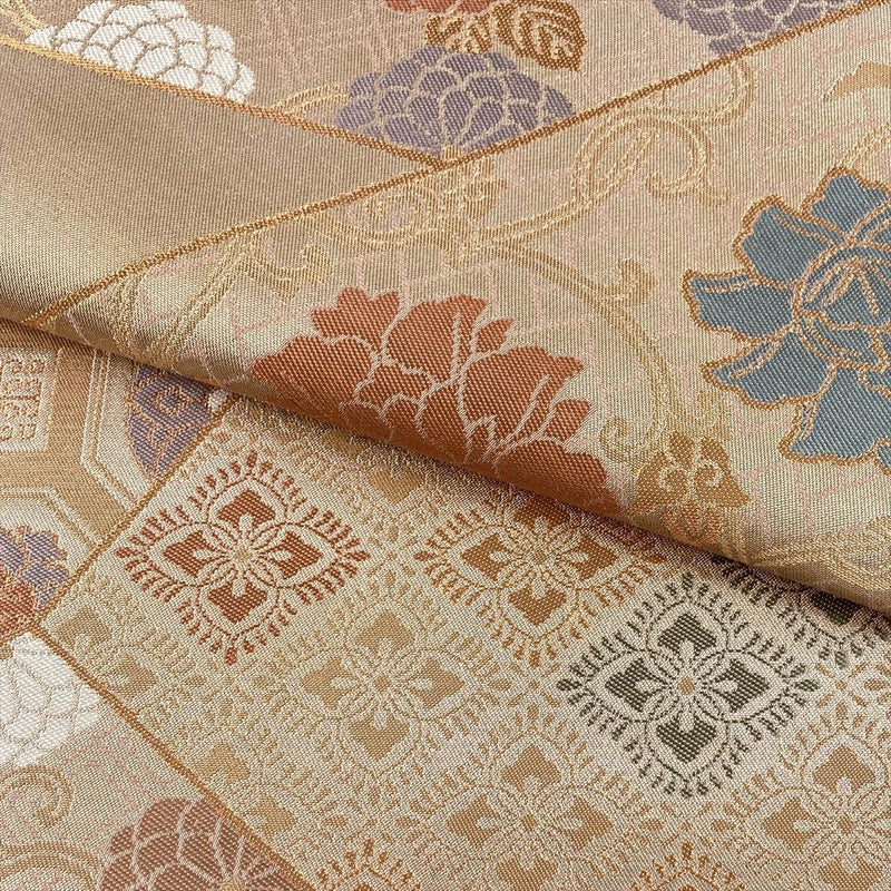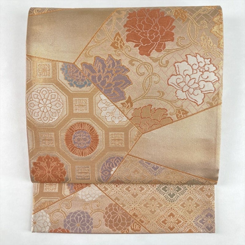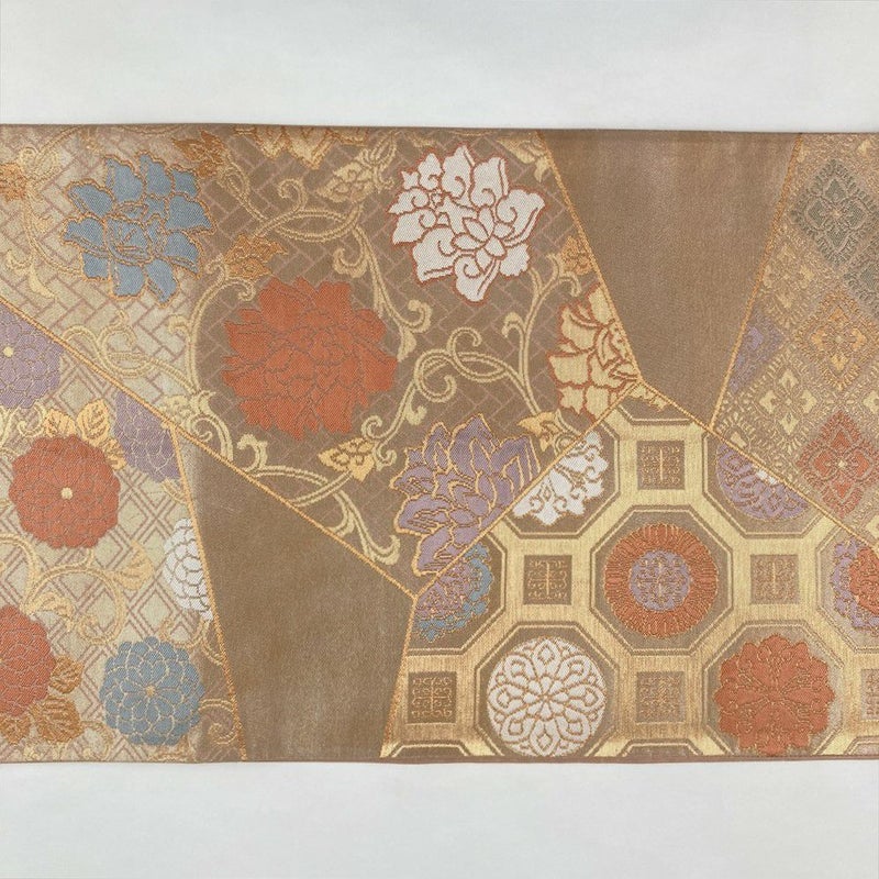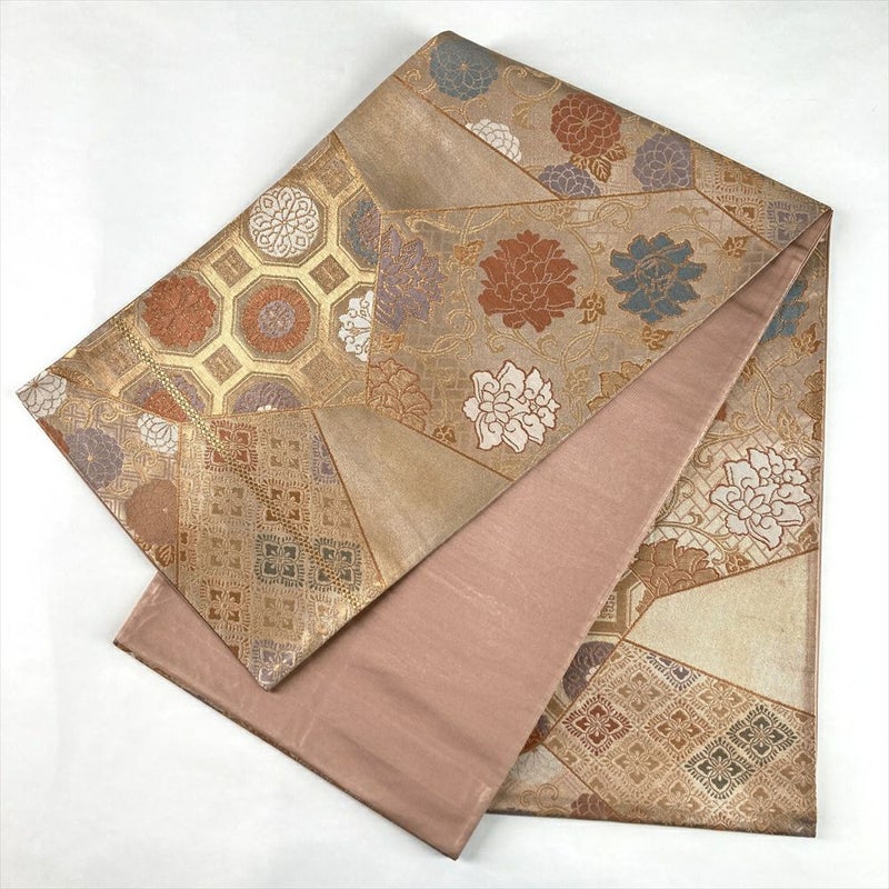 (中古)袋帯 金 フォーマル セミフォーマル 六通 金糸 色糸 切り嵌め 名物裂 絹