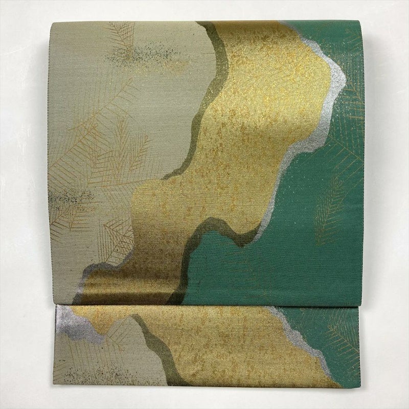 (中古)袋帯 緑 金 切箔 フォーマル セミフォーマル 六通 道長取り 若松