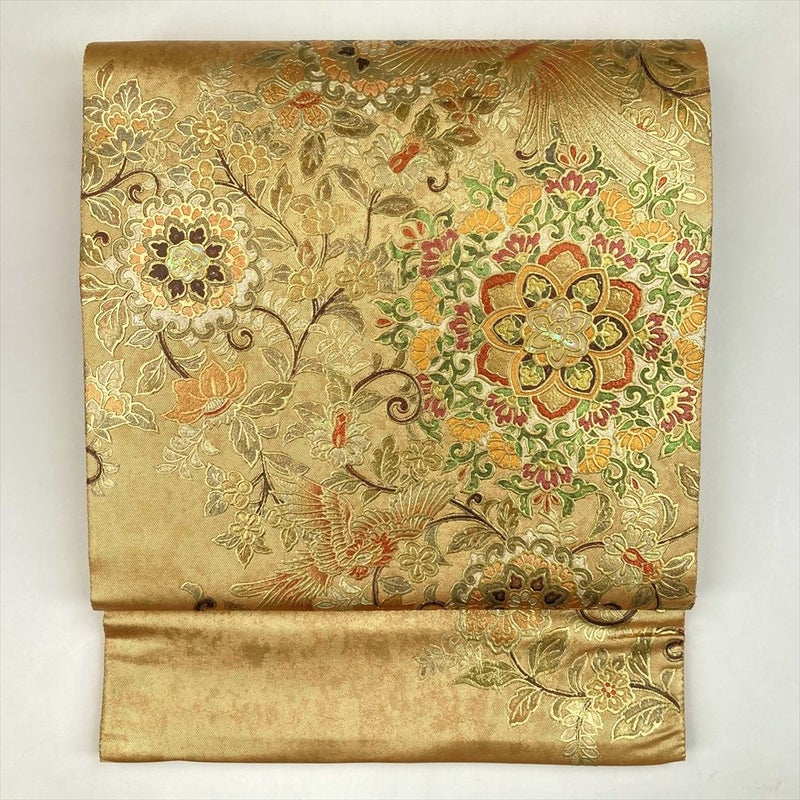 (中古)袋帯 金 フォーマル セミフォーマル 六通 切箔 金彩 花鳥 華文 天平文 オリエンタル