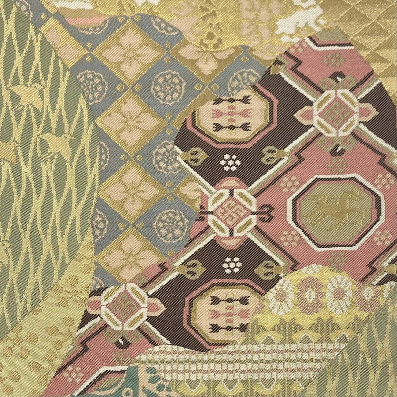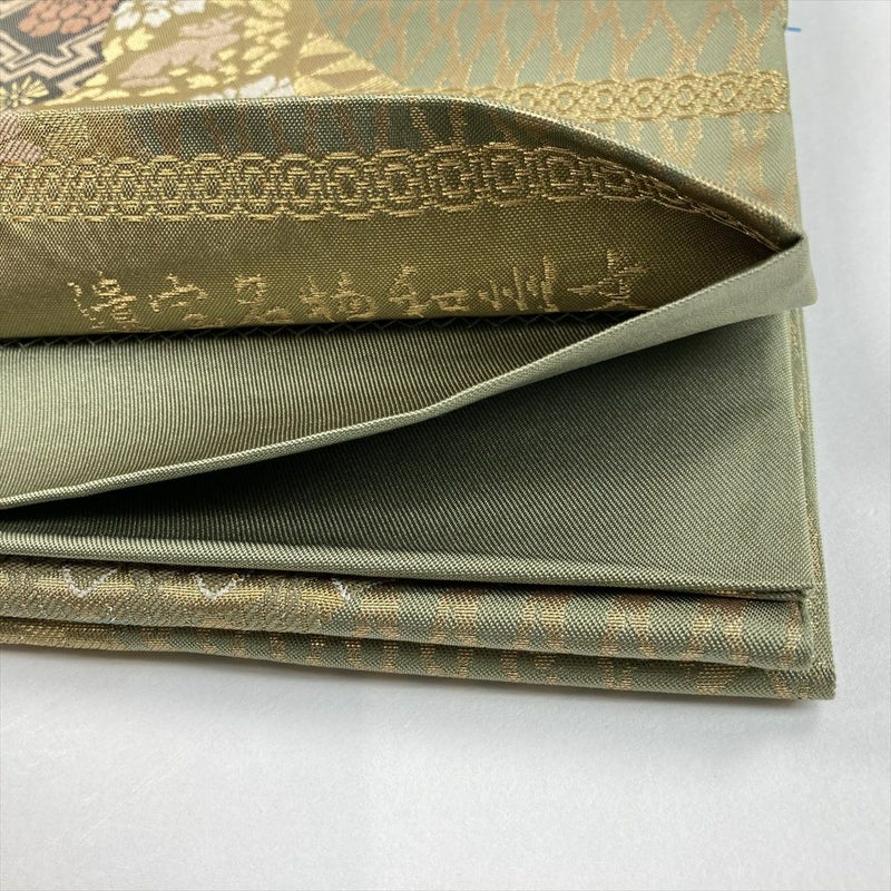 【色柄】 金 灰緑 全通本金箔本袋 遺宝名物和州文 裂取り 吉祥文 千鳥 蜀江