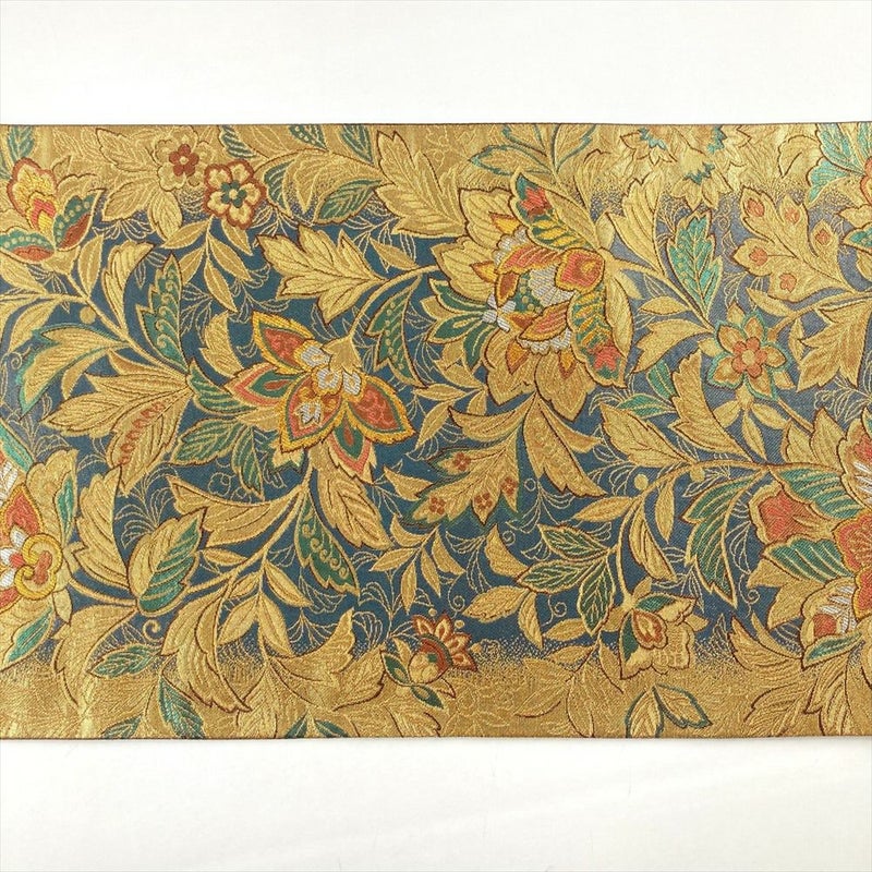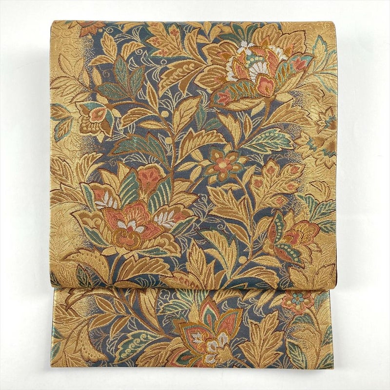 (中古)袋帯 金 濃灰 紺 フォーマル セミフォーマル 六通 多色引箔 唐花