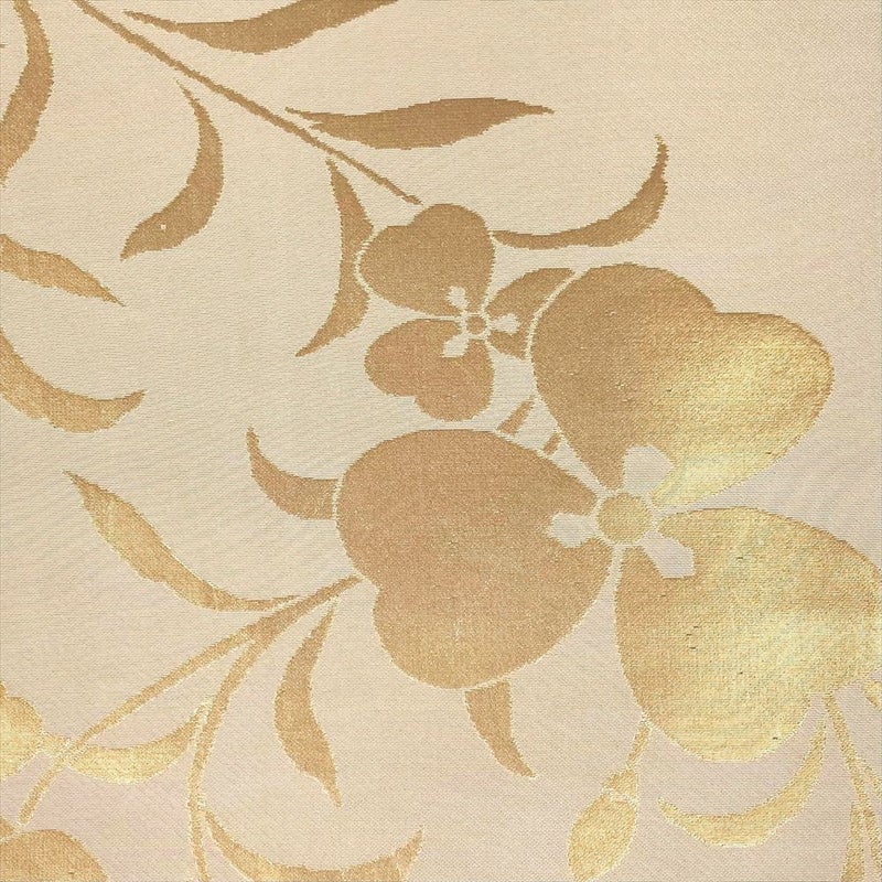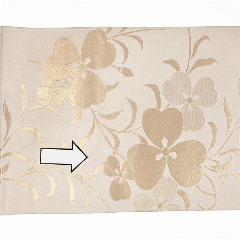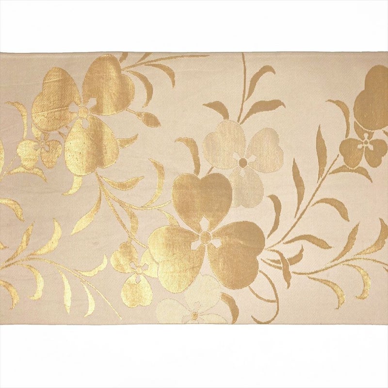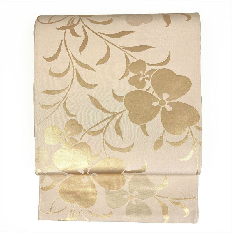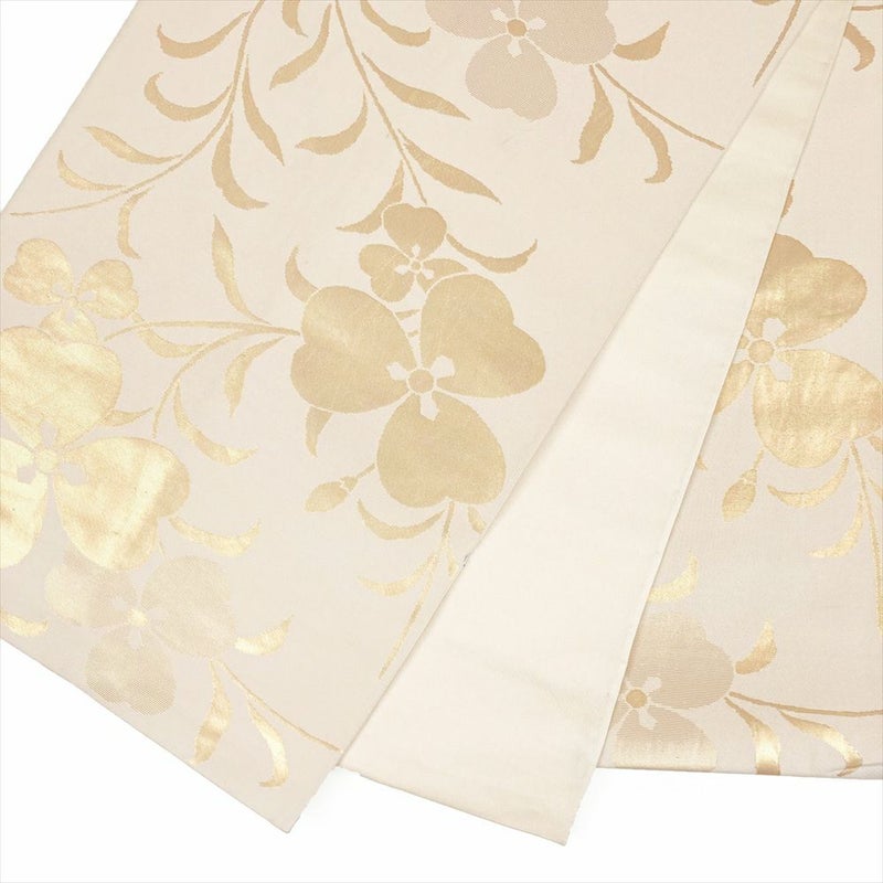 (中古)袋帯 生成り 切箔 セミフォーマル カジュアル 全通 花葉