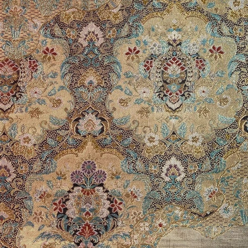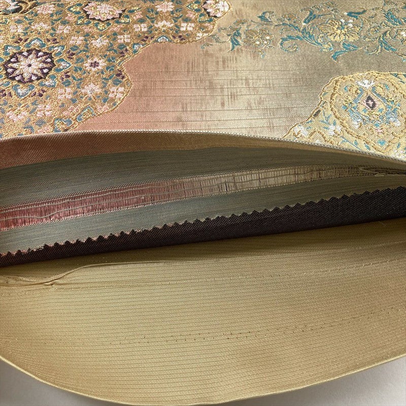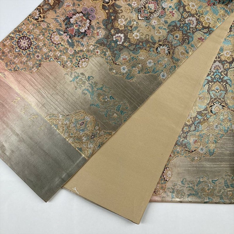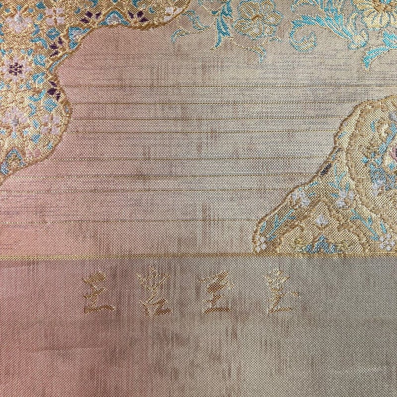 上質な絹地に織り込まれた繊細な糸は、柔らかな光沢を放ち、四季折々の花々や吉祥文様が、時の流れを感じさせる奥深い美しさを表現。